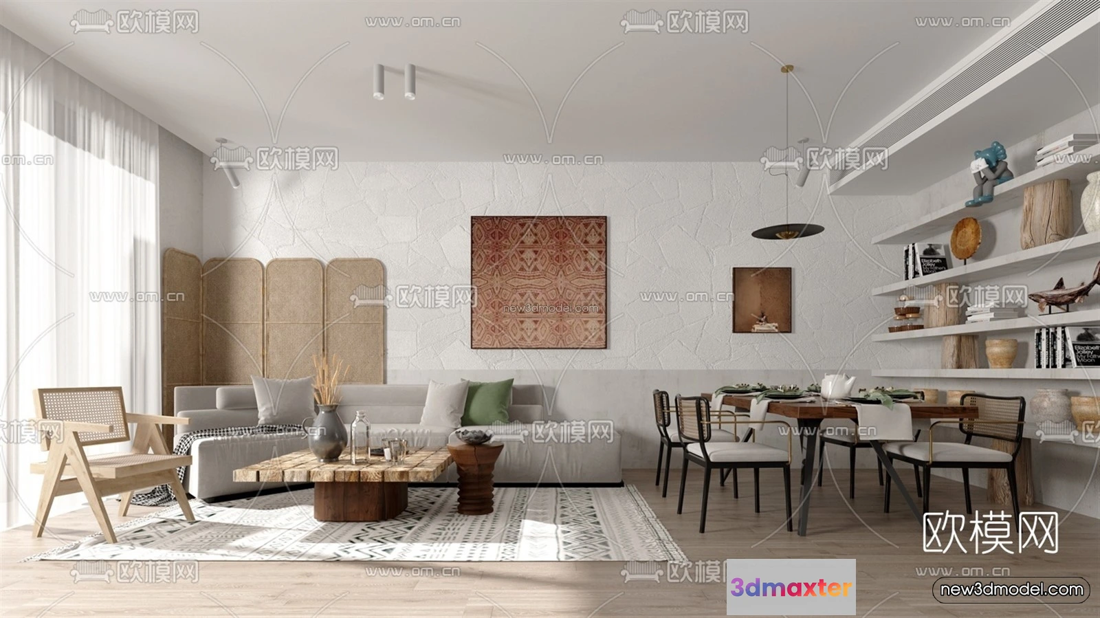 Nordic Style Interior 3D Blocks – Living Room 3D Model – 152 – Living room 3D Model – VRAY