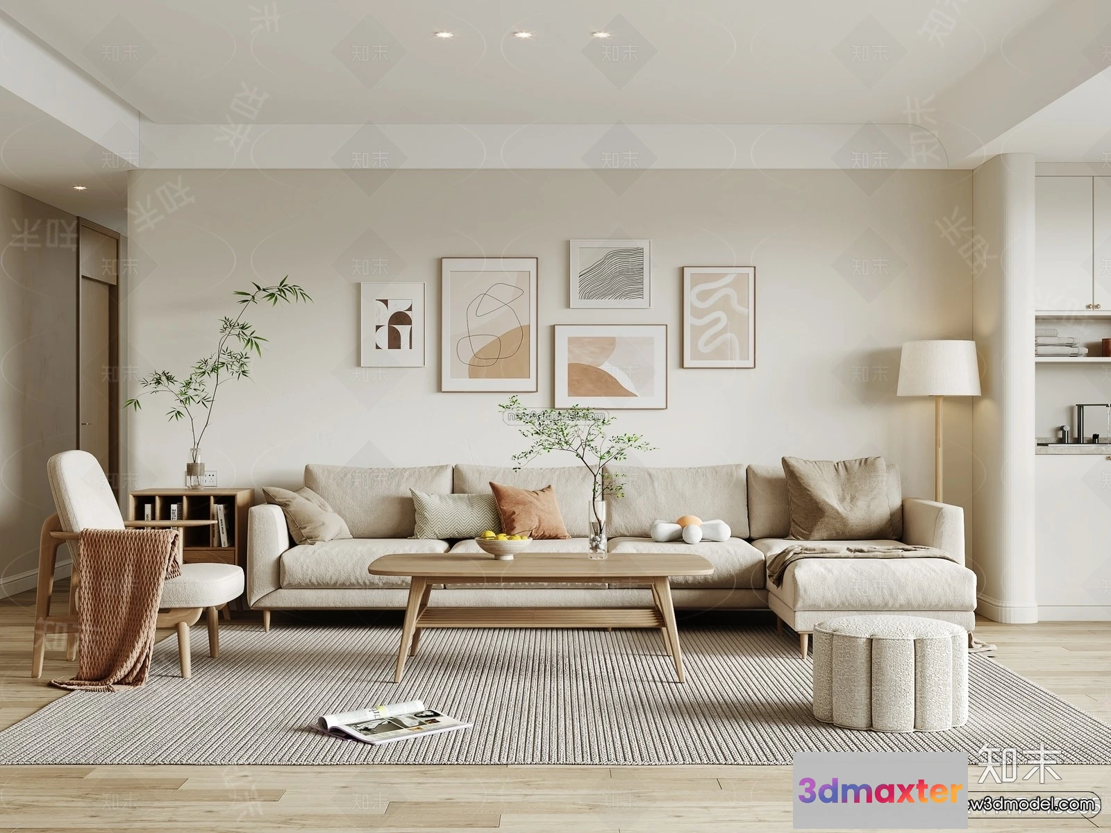 Nordic Style Interior 3D Blocks – Living Room 3D Model – 153 – Living room 3D Model – VRAY