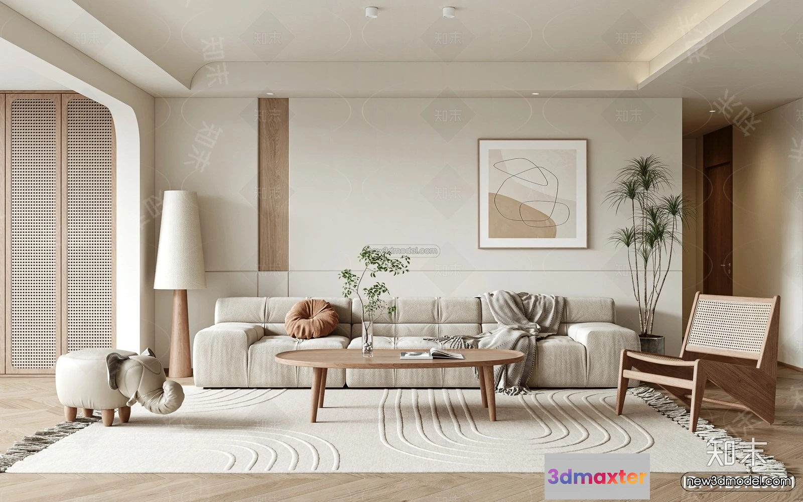 Nordic Style Interior 3D Blocks – Living Room 3D Model – 154 – Living room 3D Model – VRAY
