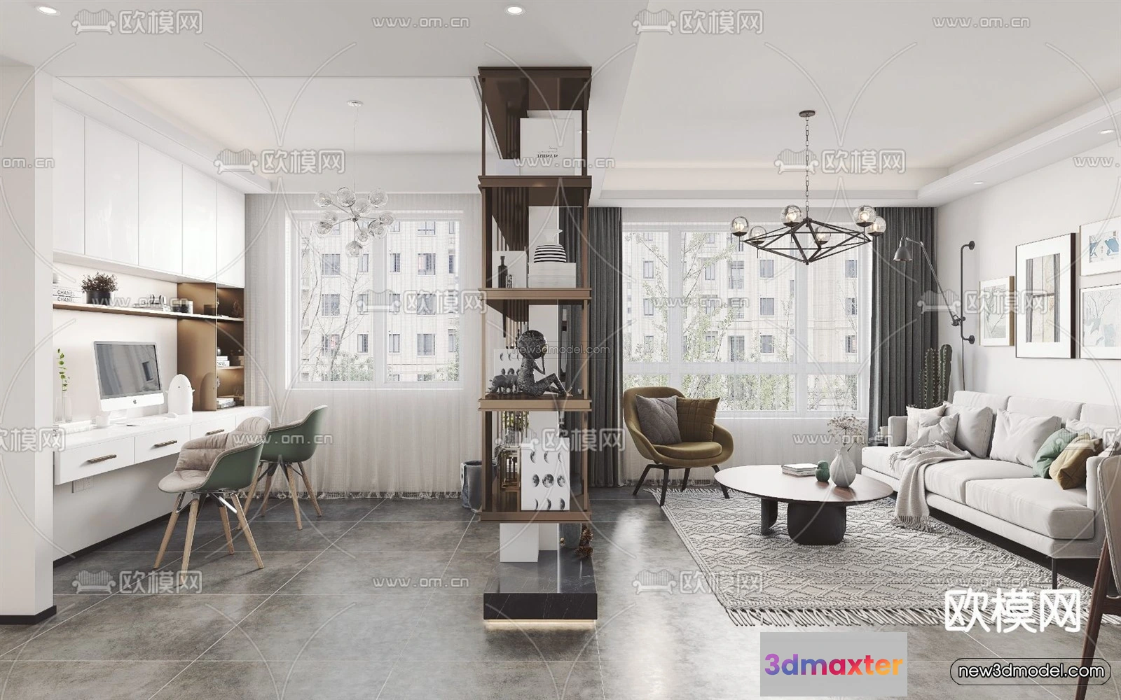 Nordic Style Interior 3D Blocks – Living Room 3D Model – 156 – Living room 3D Model – VRAY