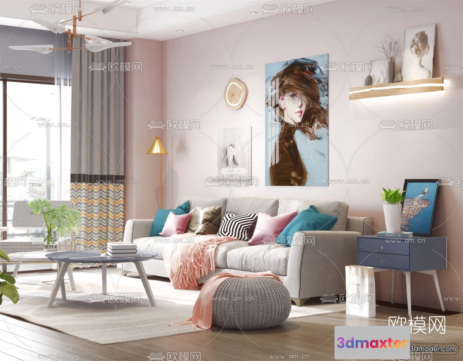 Nordic Style Interior 3D Blocks – Living Room 3D Model – 164 – Living room 3D Model – VRAY