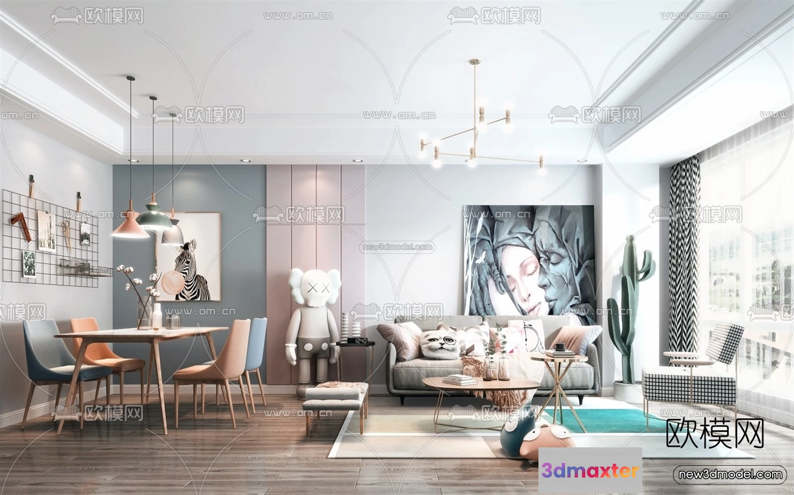 Nordic Style Interior 3D Blocks – Living Room 3D Model – 176 – Living room 3D Model – VRAY