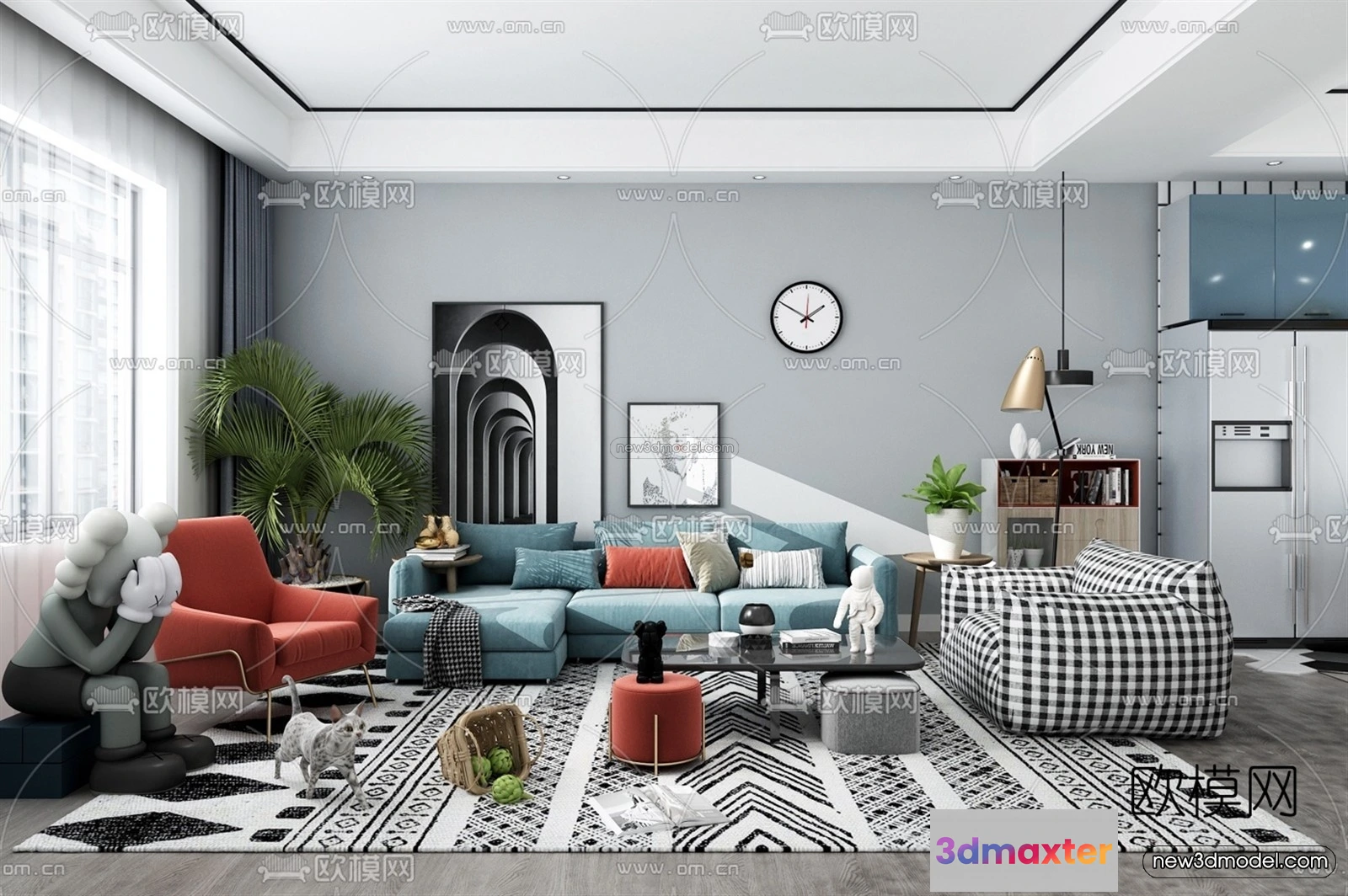 Nordic Style Interior 3D Blocks – Living Room 3D Model – 184 – Living room 3D Model – VRAY