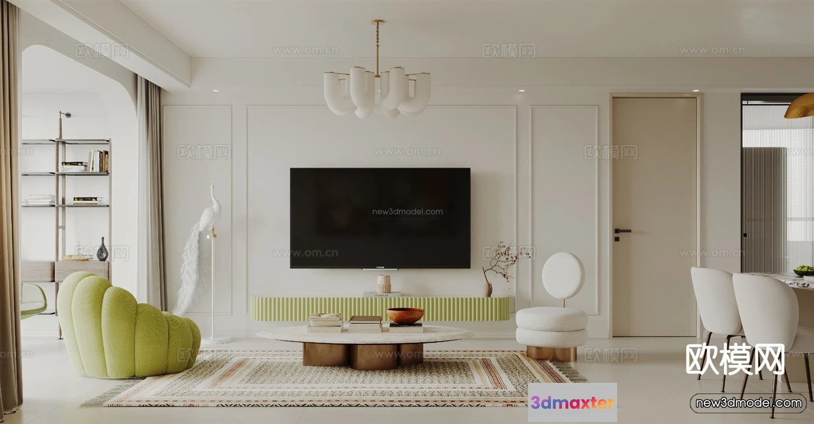 Nordic Style Interior 3D Blocks – Living Room 3D Model – 194 – Living room 3D Model – VRAY