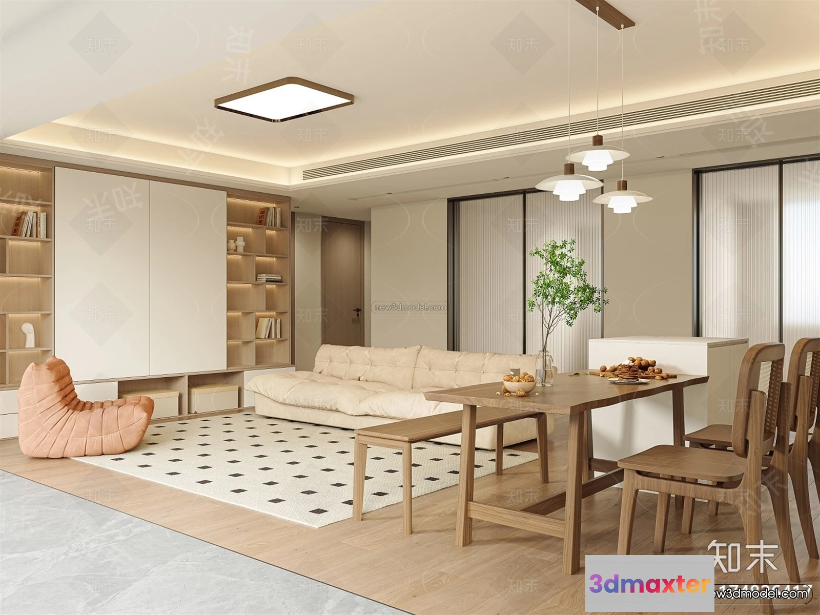 - Name: Nordic Style Interior 3D Blocks – Living Room 3D Model – 198