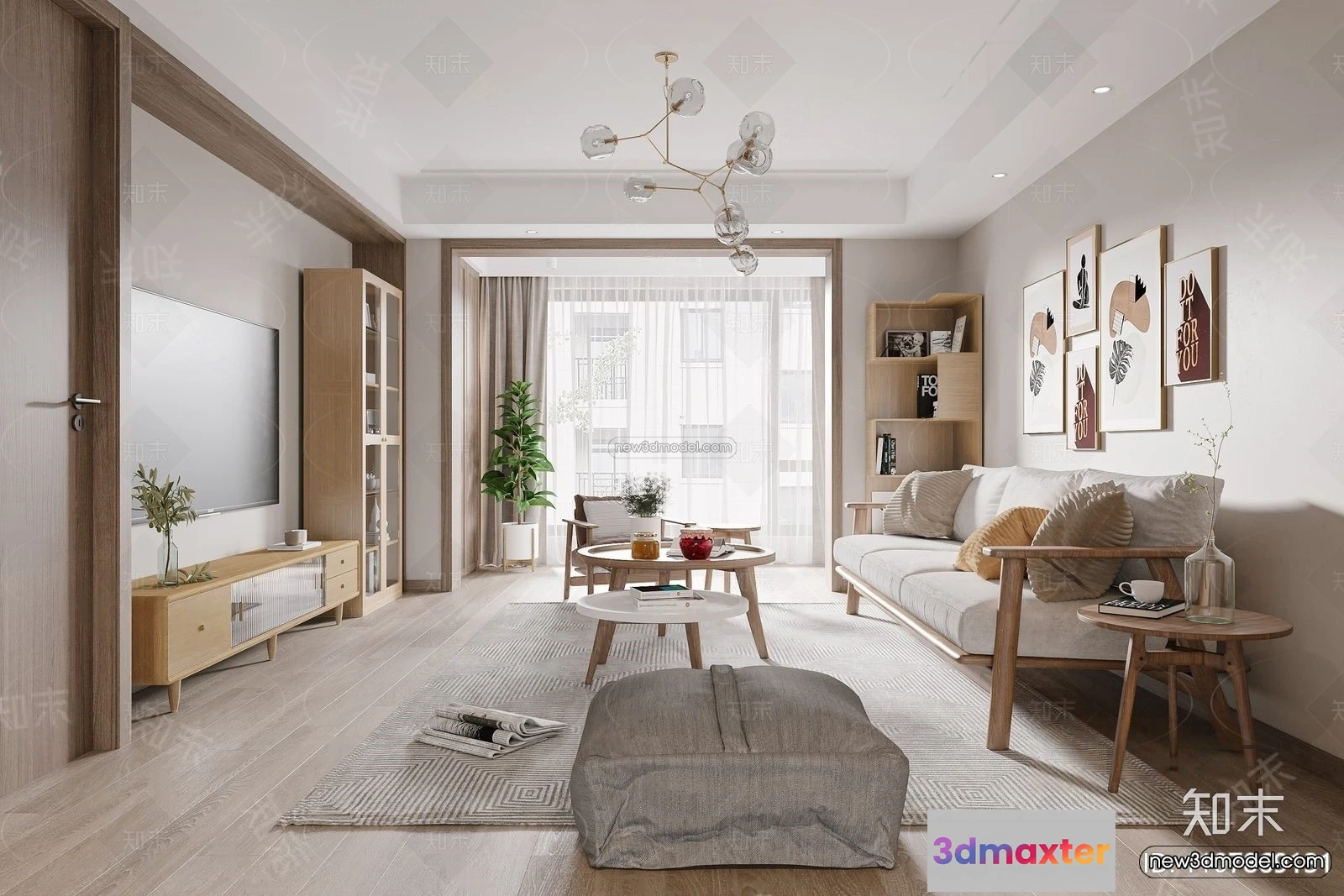 Nordic Style Interior 3D Blocks – Living Room 3D Model – 202 – Living room 3D Model – VRAY