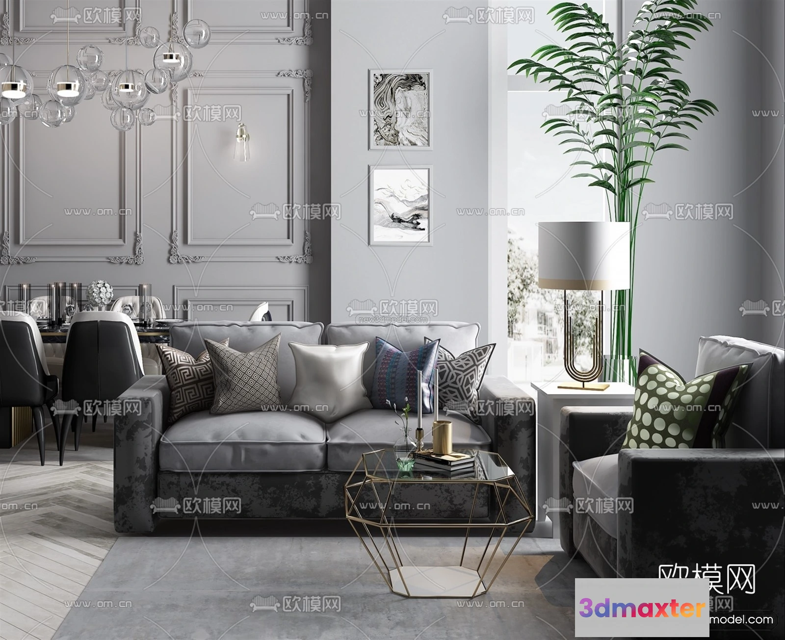Nordic Style Interior 3D Blocks – Living Room 3D Model – 222 – Living room 3D Model – VRAY