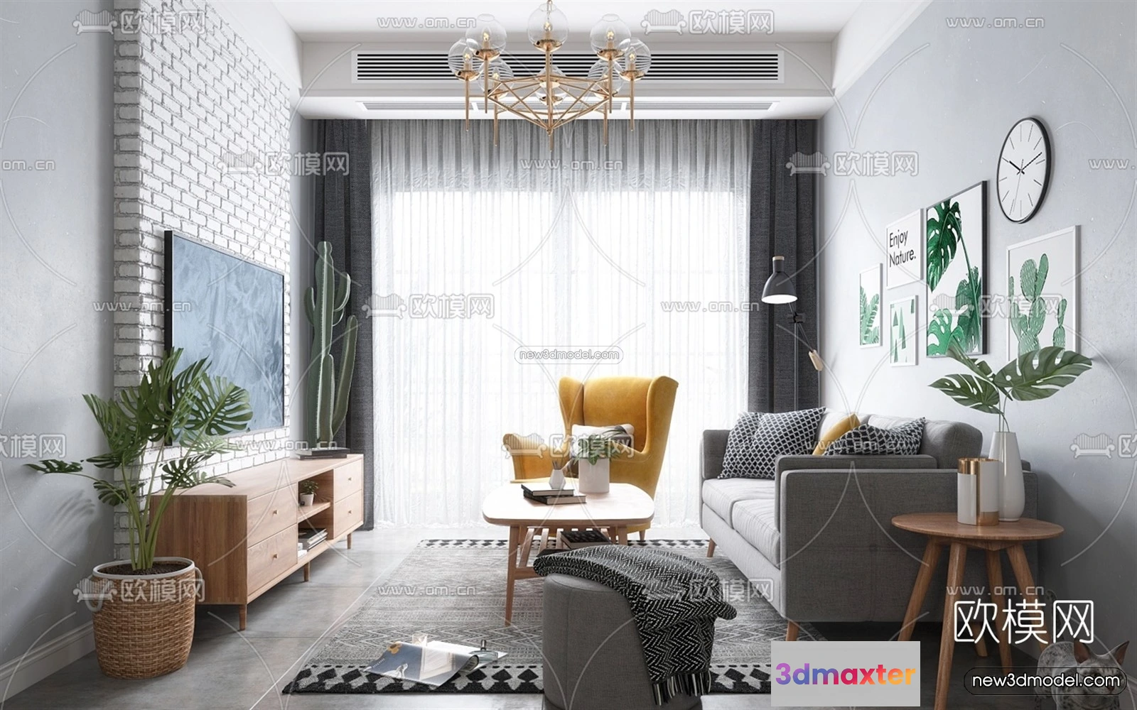 Nordic Style Interior 3D Blocks – Living Room 3D Model – 225 – Living room 3D Model – VRAY