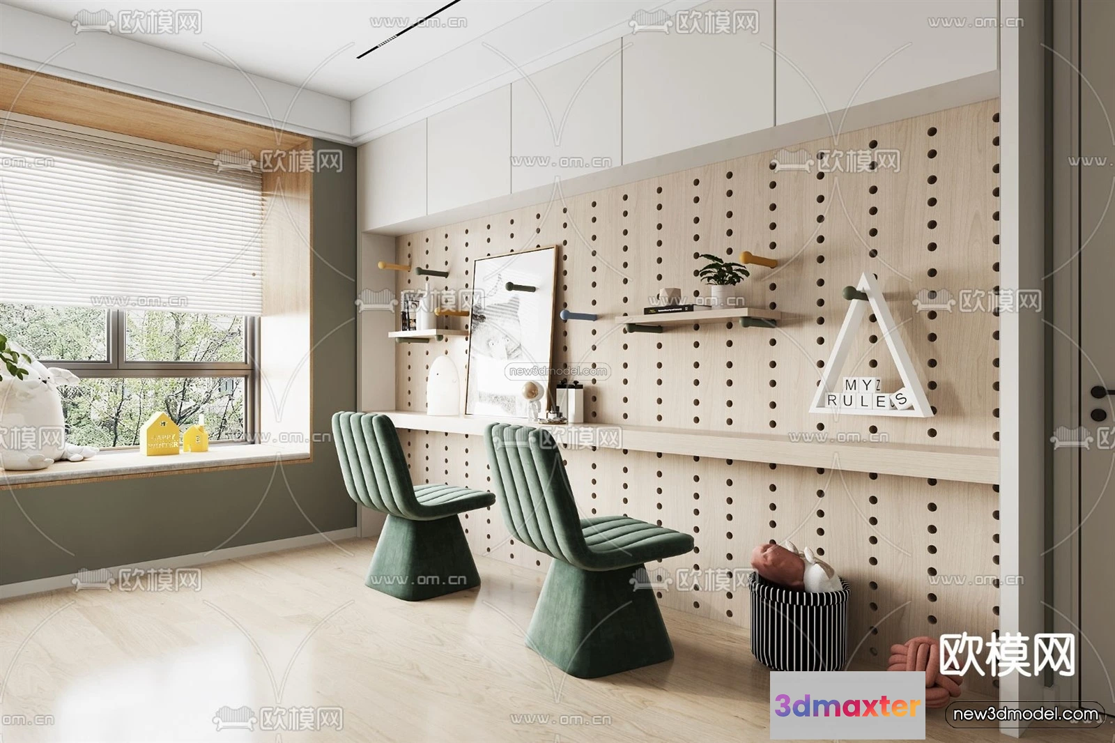 Nordic Style Interior 3D Blocks – Living Room 3D Model – 236 – Living room 3D Model – VRAY