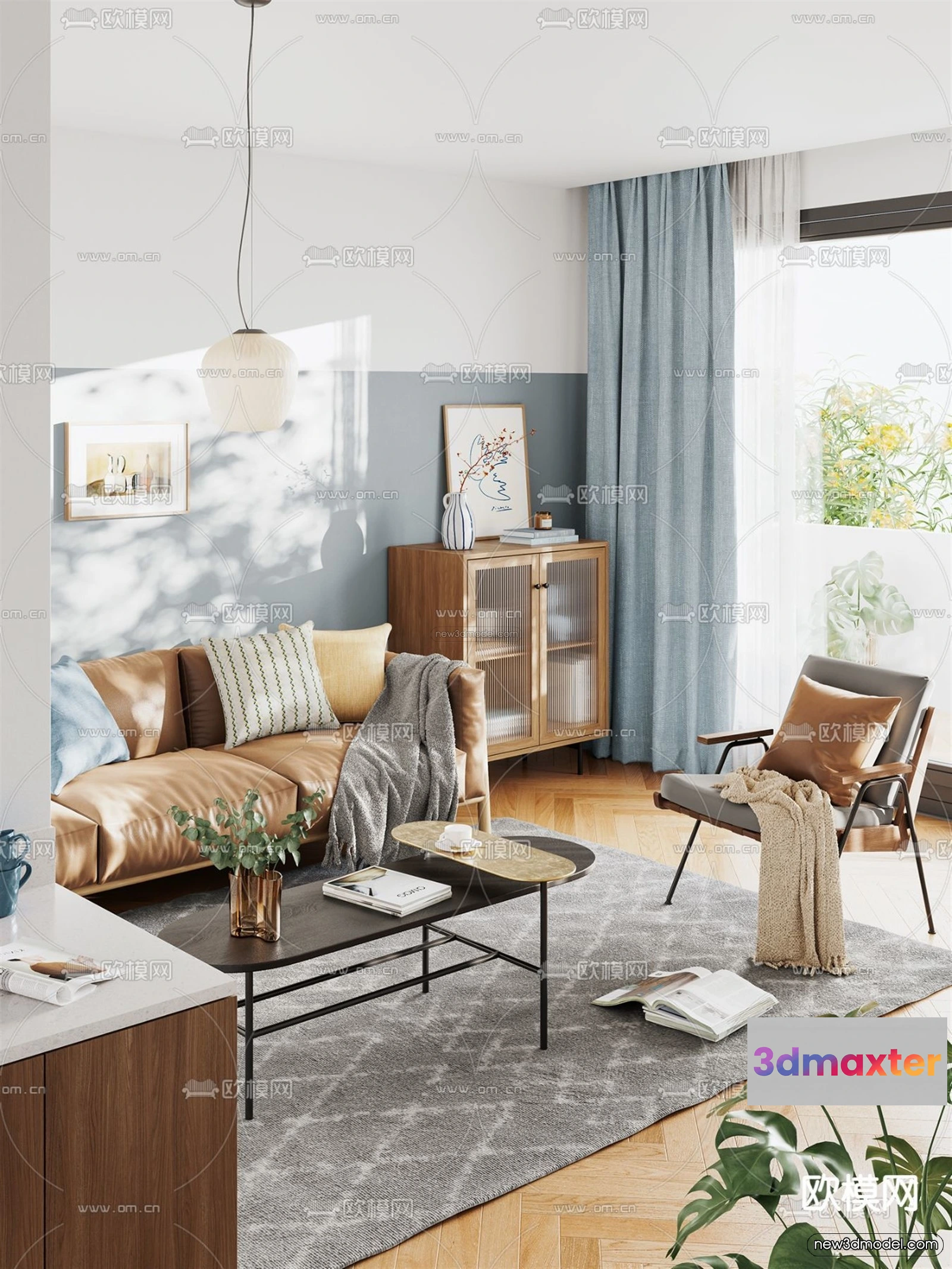 Nordic Style Interior 3D Blocks – Living Room 3D Model – 238 – Living room 3D Model – VRAY