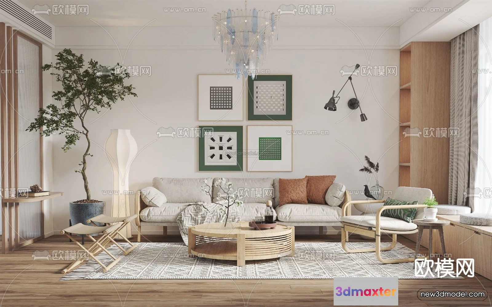 Nordic Style Interior 3D Blocks – Living Room 3D Model – 239 – Living room 3D Model – VRAY