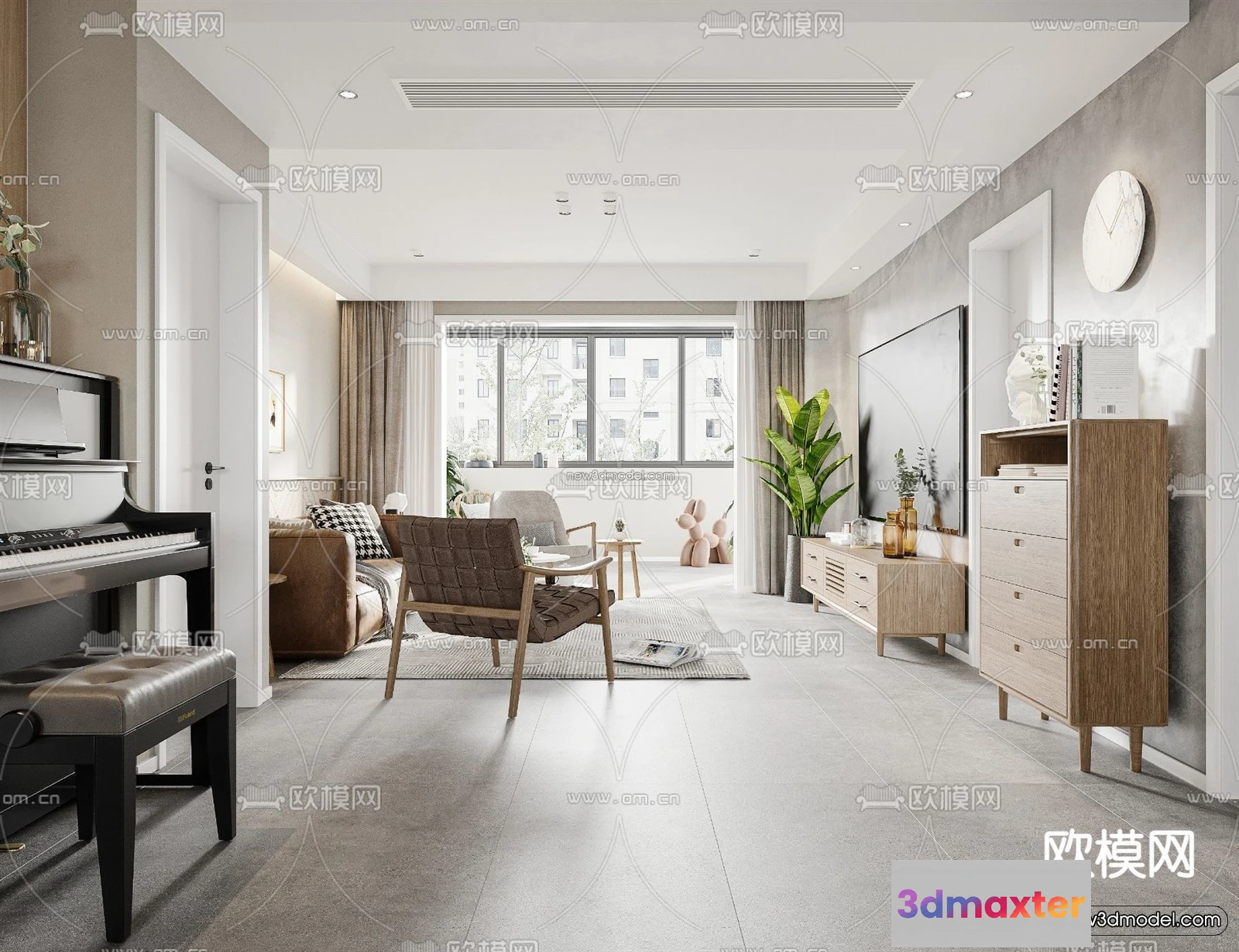 Nordic Style Interior 3D Blocks – Living Room 3D Model – 255 – Living room 3D Model – VRAY