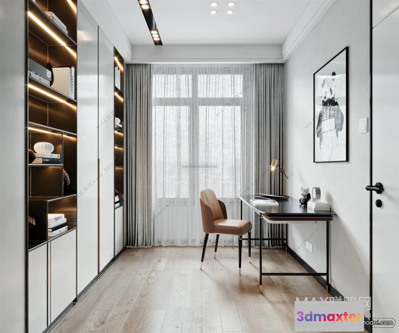 3D Models / 3D Scenes / Interior / Office Home / Nordic Style Interior 3D Blocks – Study Room 3D Model – 475 3D Max