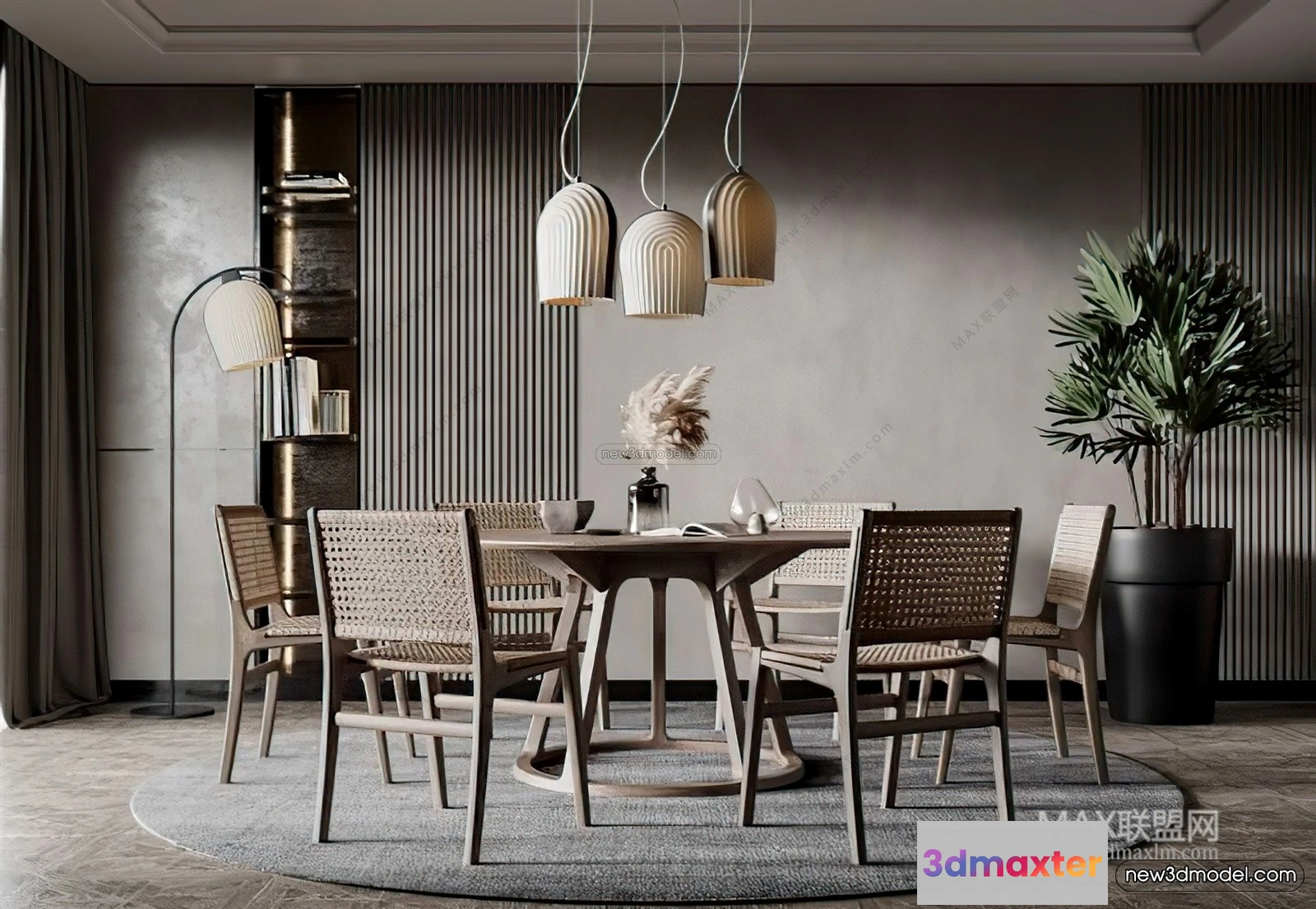 3D Models / 3D Scenes / Interior / Office Home / Nordic Style Interior 3D Blocks – Study Room 3D Model – 478 3D Max