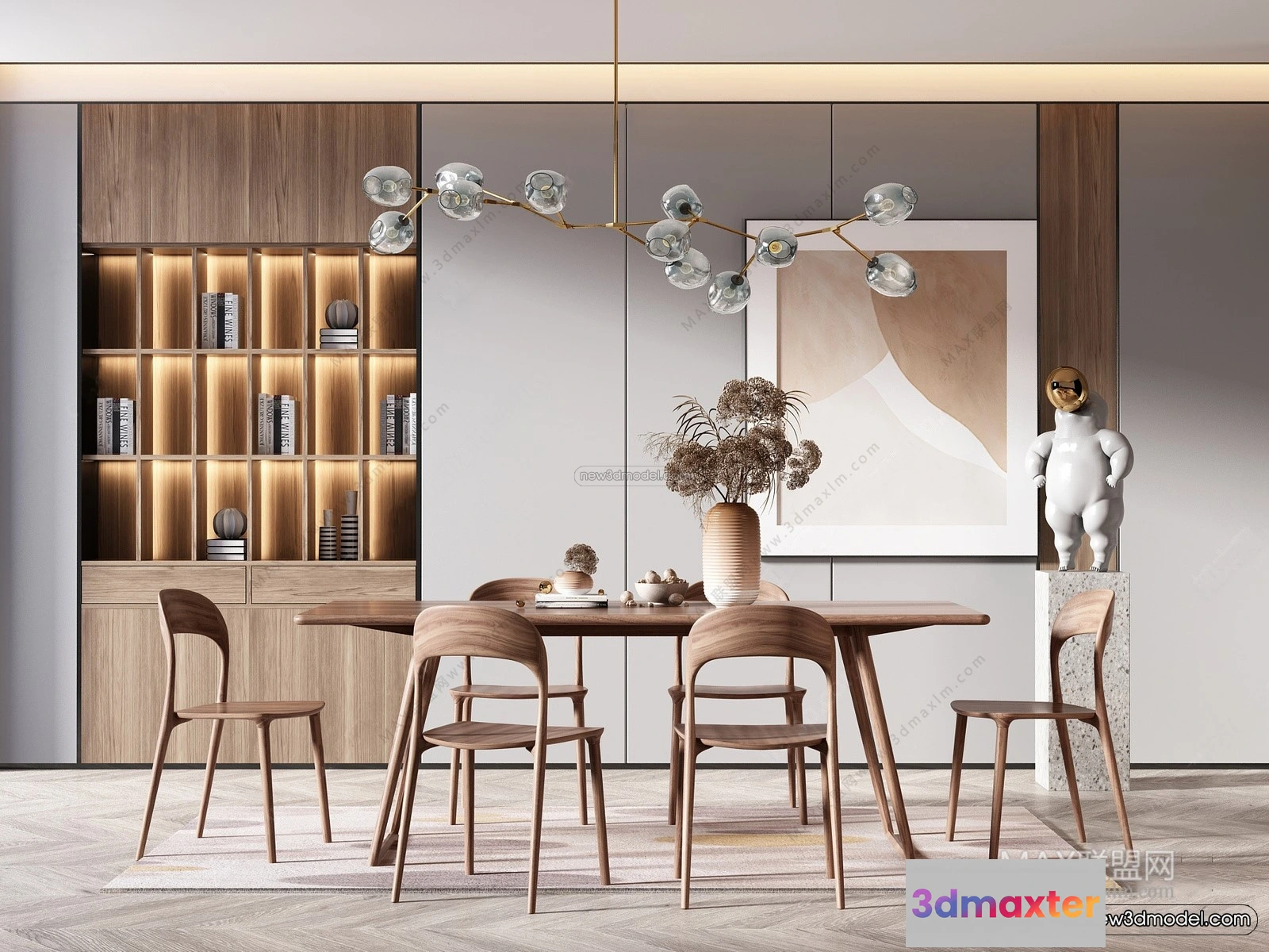 3D Models / 3D Scenes / Interior / Office Home / Nordic Style Interior 3D Blocks – Study Room 3D Model – 481 3D Max