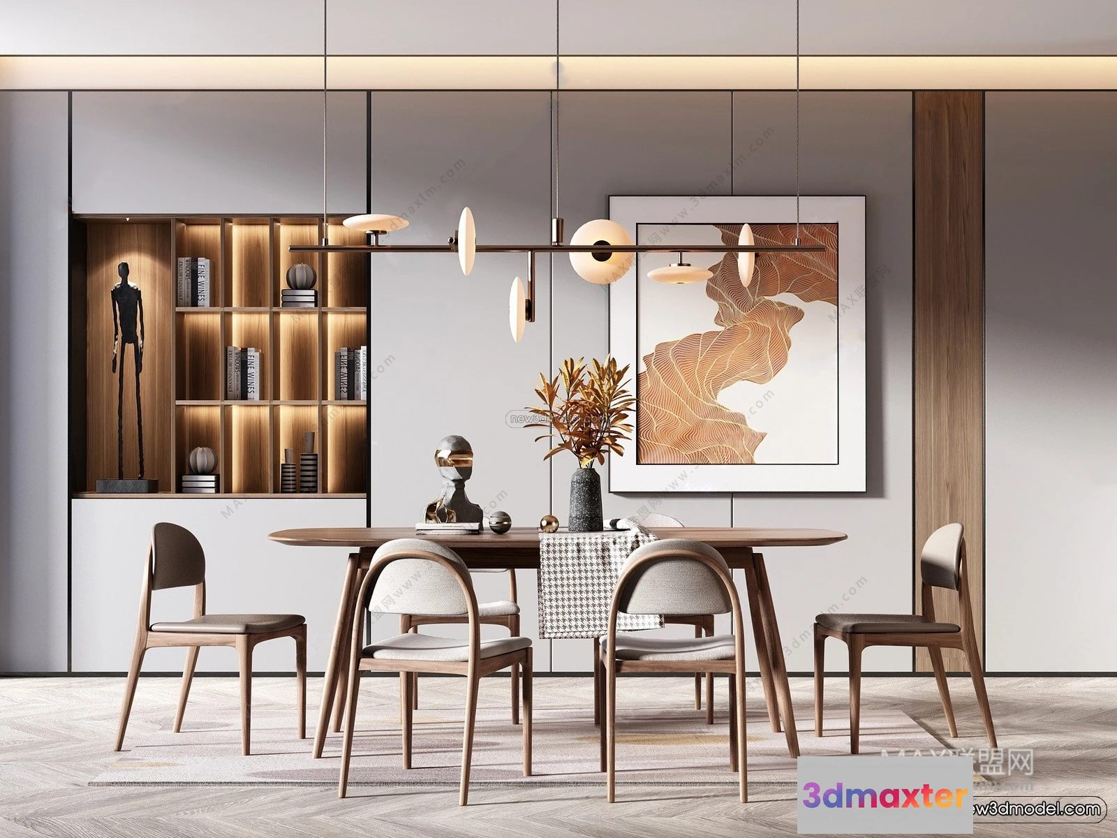 3D Models / 3D Scenes / Interior / Office Home / Nordic Style Interior 3D Blocks – Study Room 3D Model – 483 3D Max