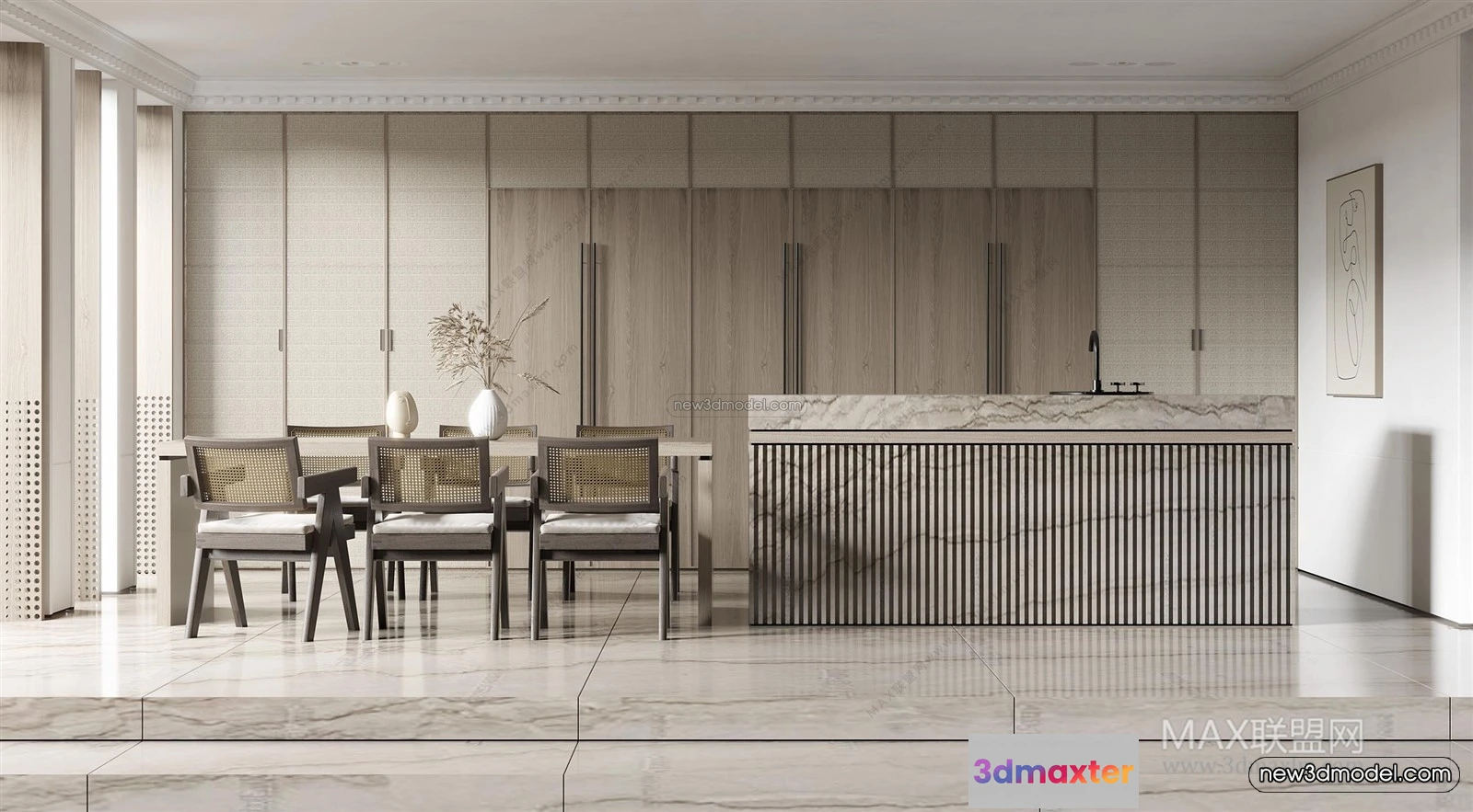 3D Models / 3D Scenes / Interior / Office Home / Nordic Style Interior 3D Blocks – Study Room 3D Model – 487 3D Max