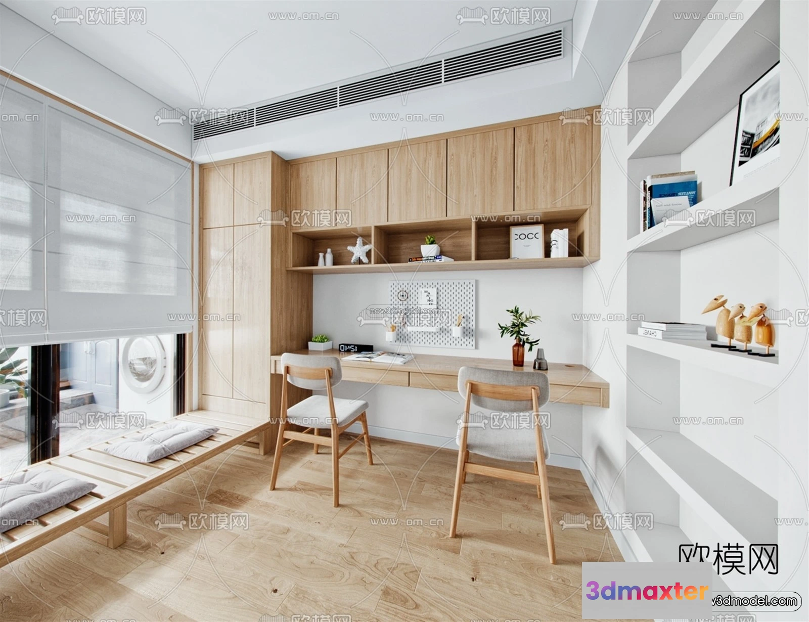 Nordic Style Interior 3D Blocks – Study Room 3D Model – 497 – Office Home 3D Model – VRAY