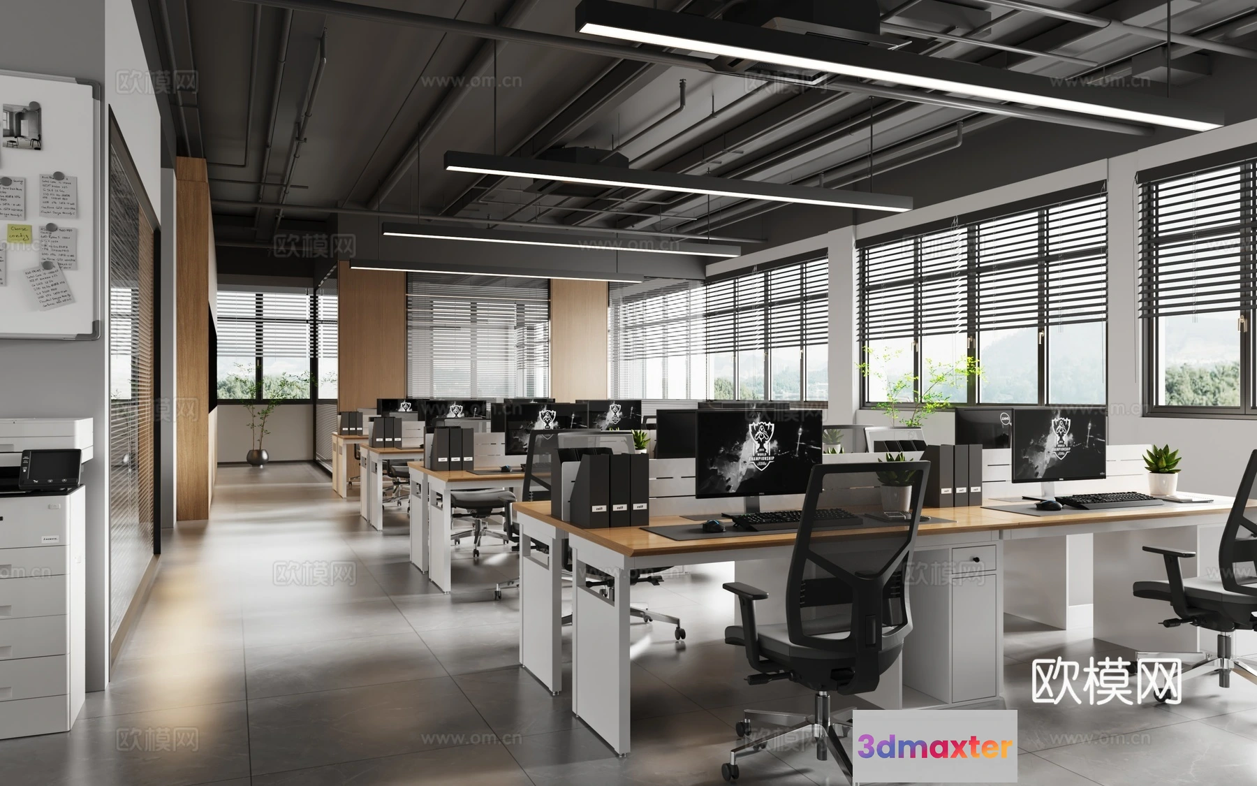 3D Models / 3D Scenes / Interior / Office Spaces / Office Space 3D Scenes – Office Room 3D Blocks – 042 – VRAY Render 3D Max