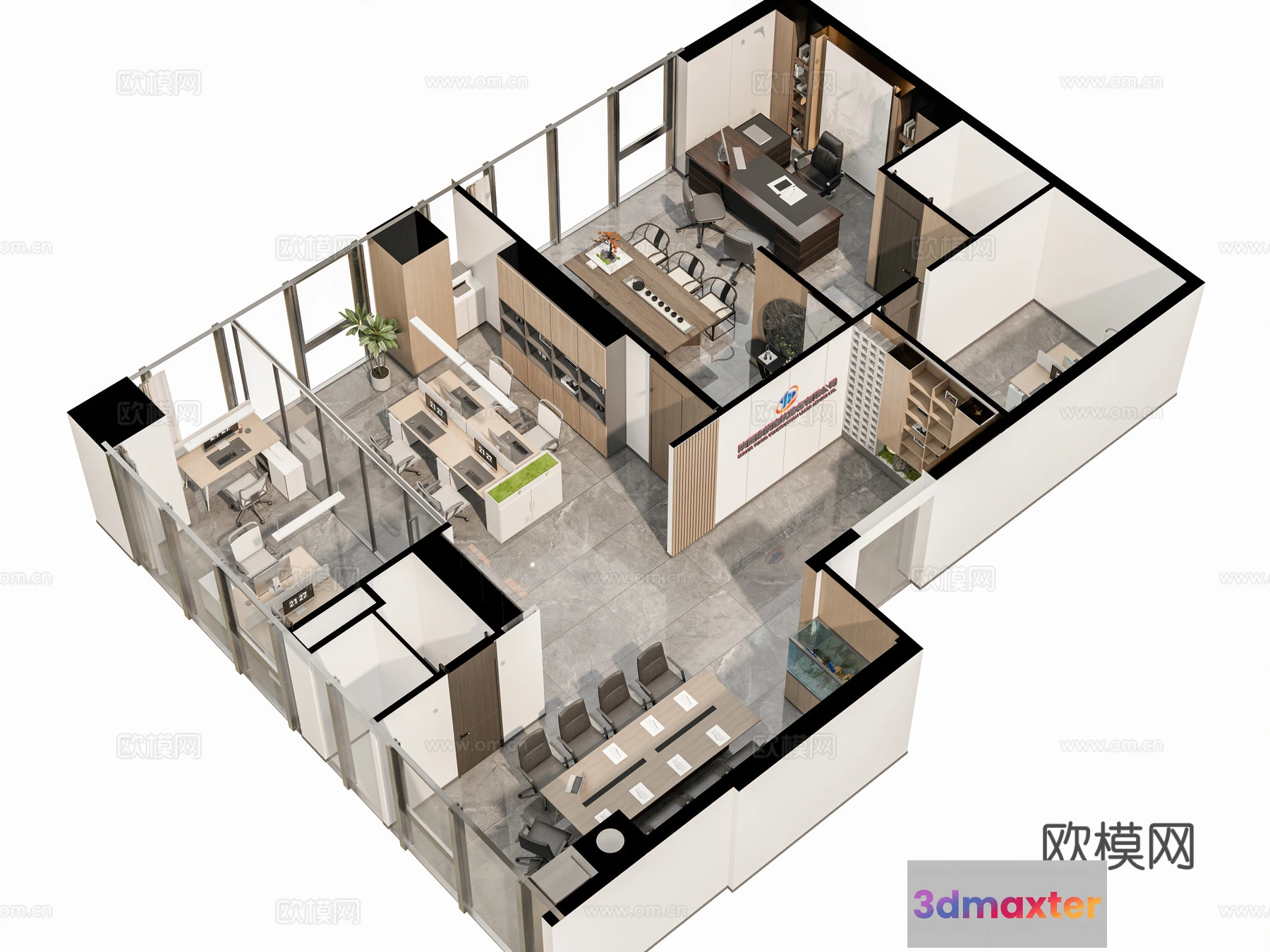 3D Models / 3D Scenes / Interior / Office Spaces / Office Space 3D Scenes – Office Room 3D Blocks – 046 – VRAY Render 3D Max