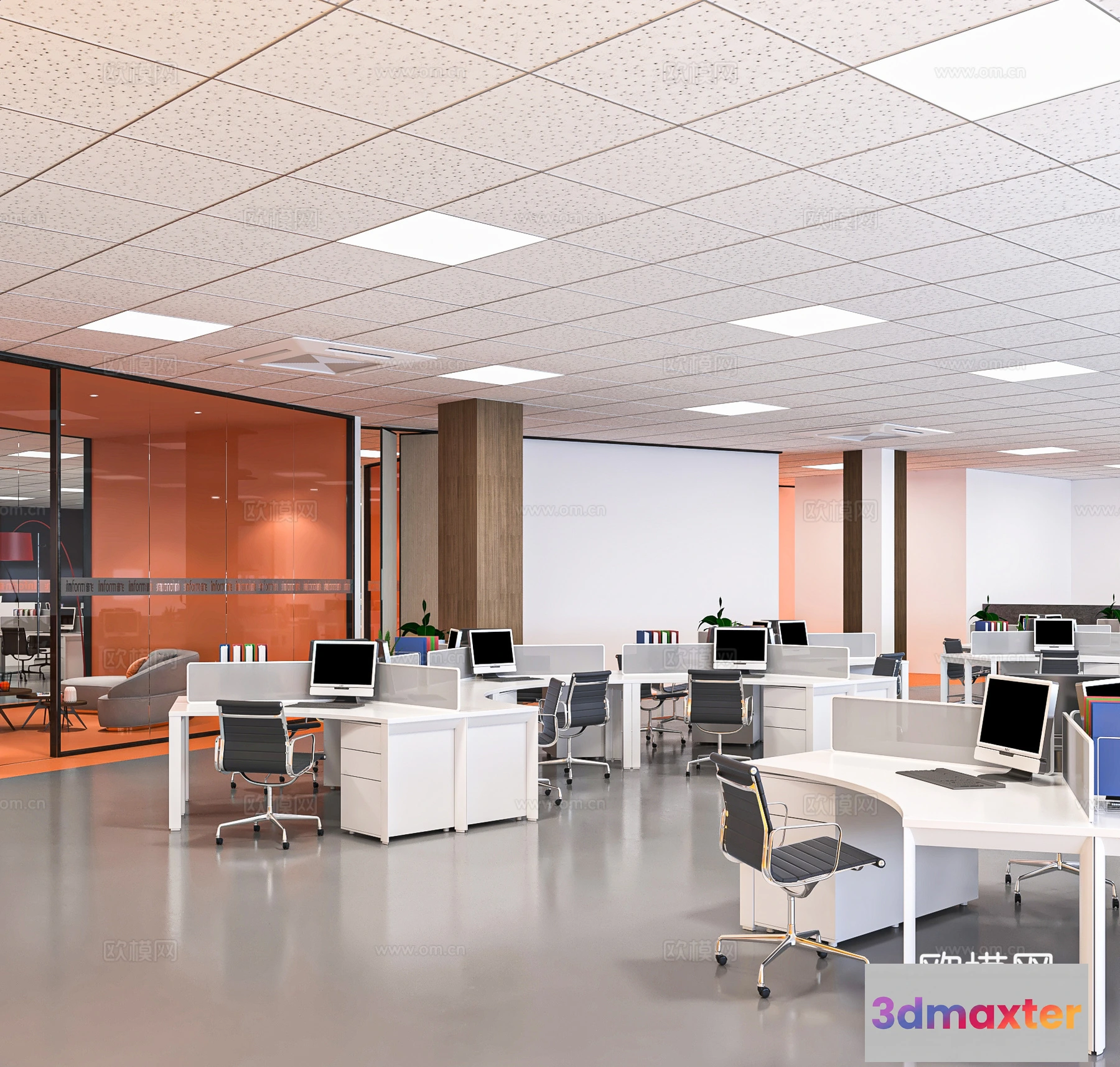 3D Models / 3D Scenes / Interior / Office Spaces / Office Space 3D Scenes – Office Room 3D Blocks – 079 – VRAY Render 3D Max