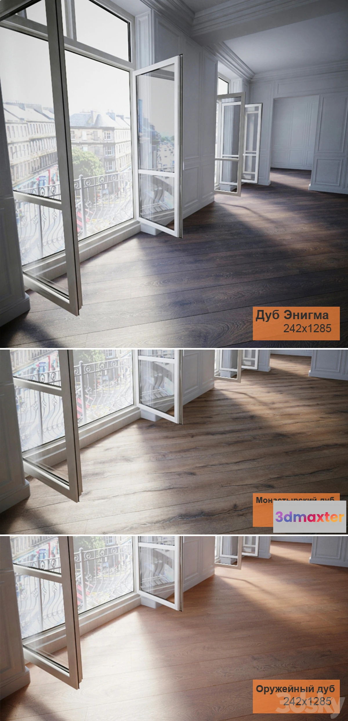 Textures and materials are three types of flooring. Created using MultiTexture + FloorGenerator. Download these free plugins you can here: http://www.cg-source.com/ in the Plugins / Tools Archive contains high quality wood texture permit one board more than 2000 pixels. The archive in addition to themselves textures as well lie .max2011 file with the finished floor of 4×4 meters and materials to it .mat