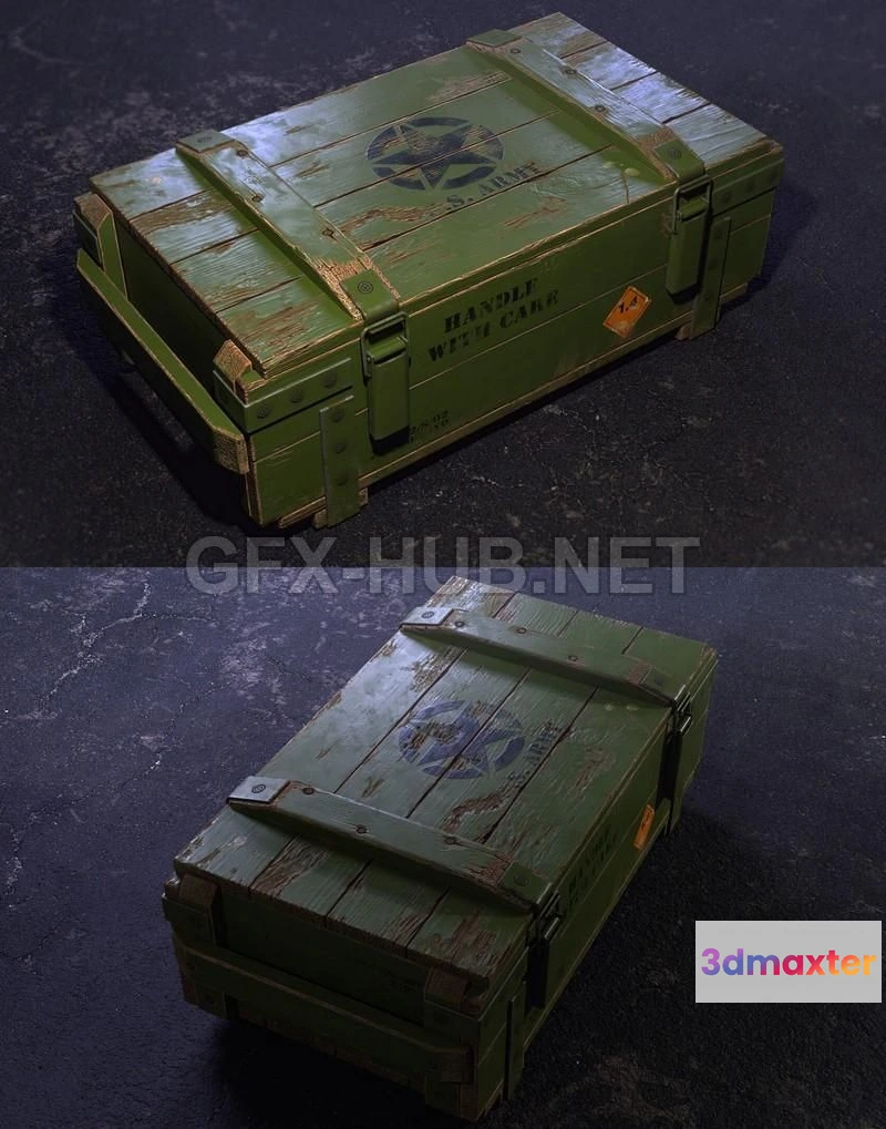 - Name: PBR Game 3D Model – Army crate