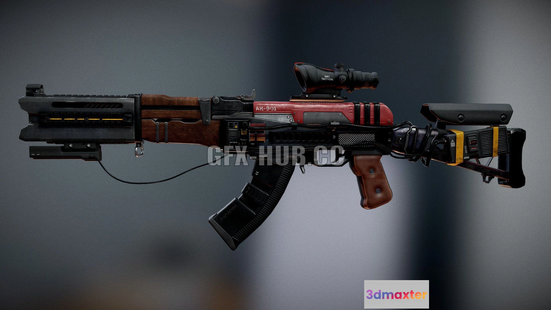 - Name: PBR Game 3D Model – Assault Rifle – AK Volkodav Low-poly
