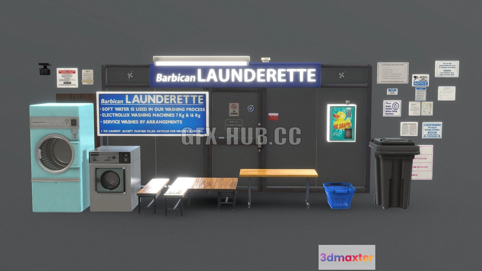 - Name: PBR Game 3D Model – Barbican Launderette