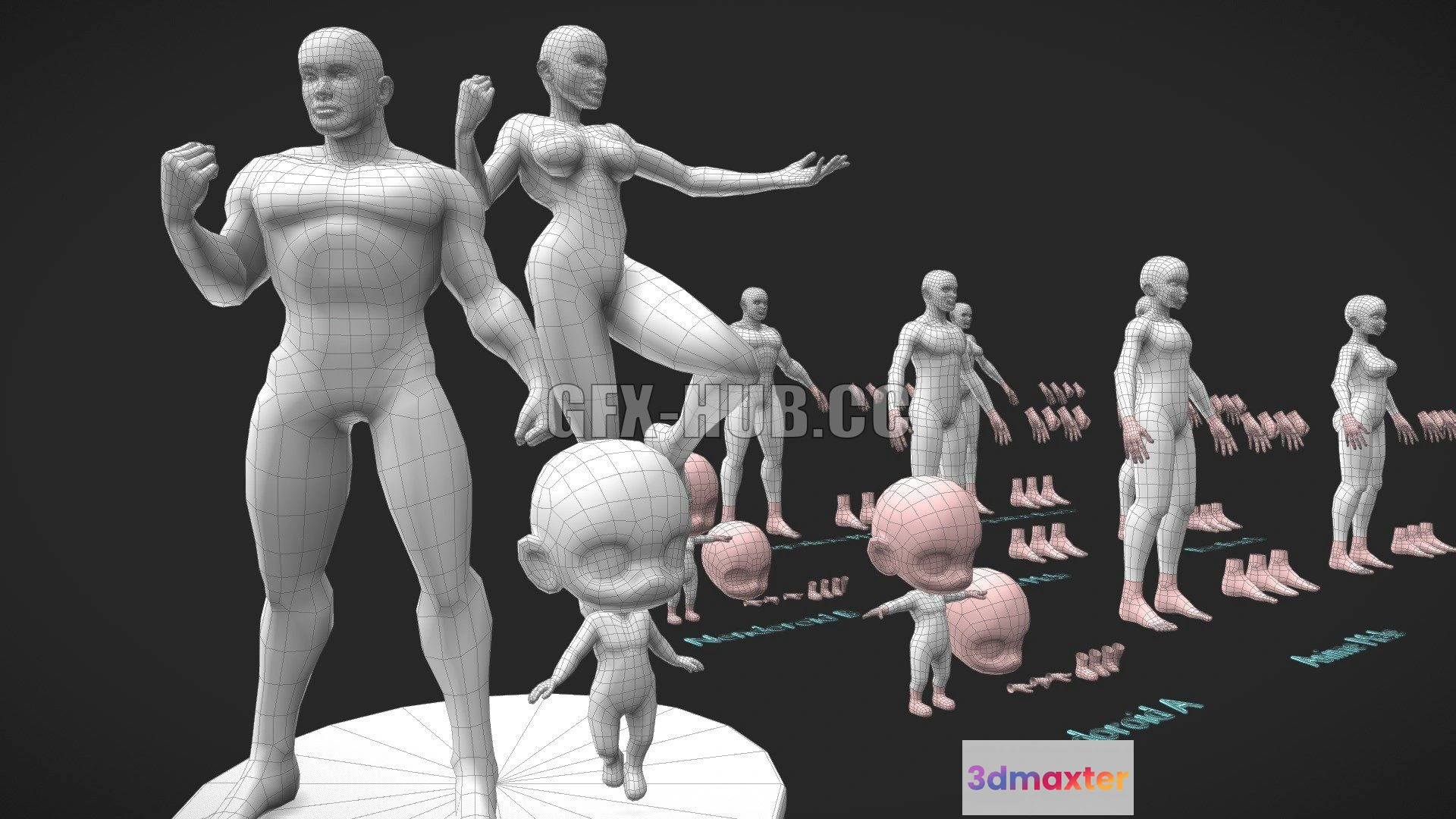 - Name: PBR Game 3D Model – Base Meshes Character Starter Kit + Rig