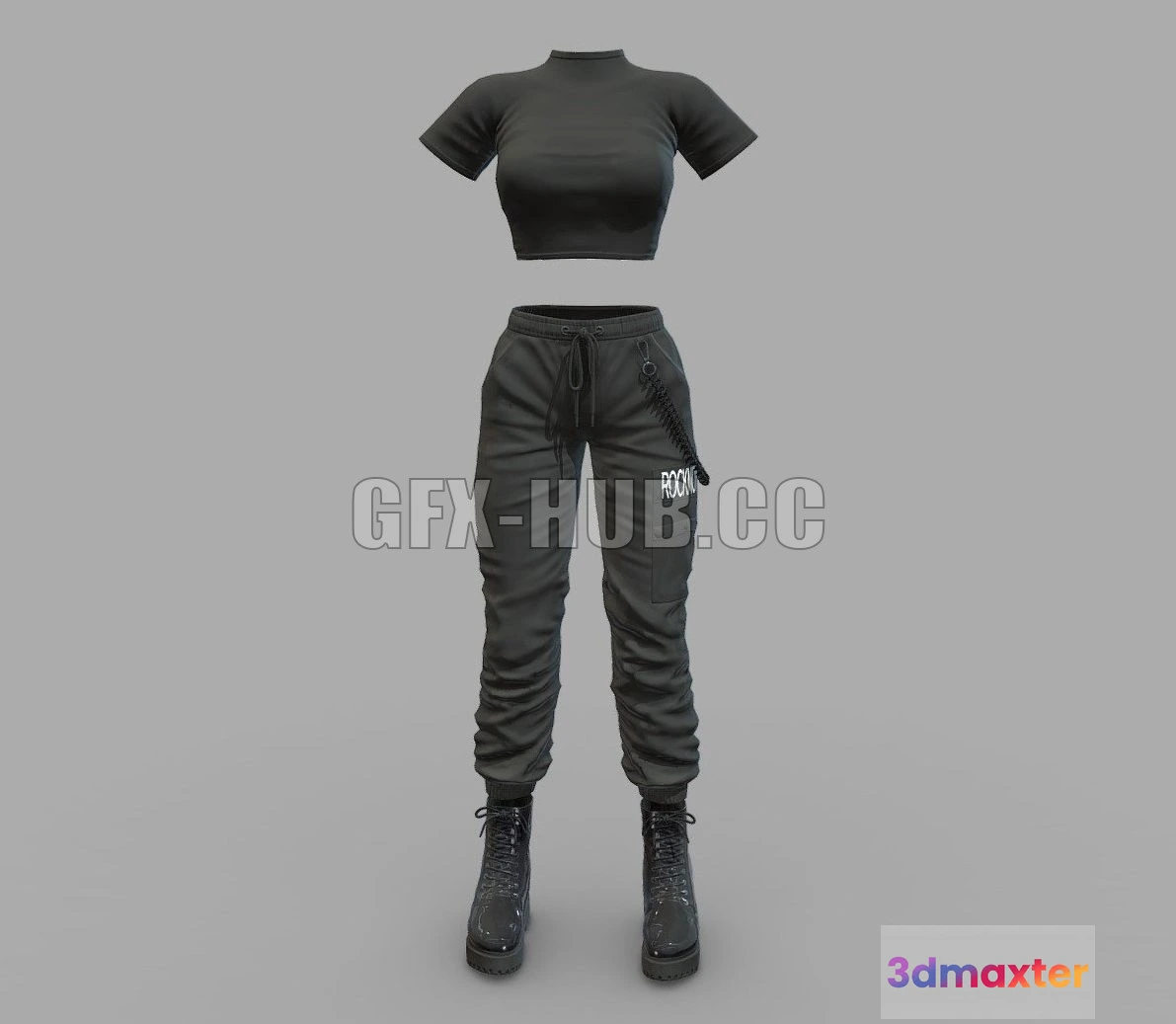 - Name: PBR Game 3D Model – Black Cargo Outfit