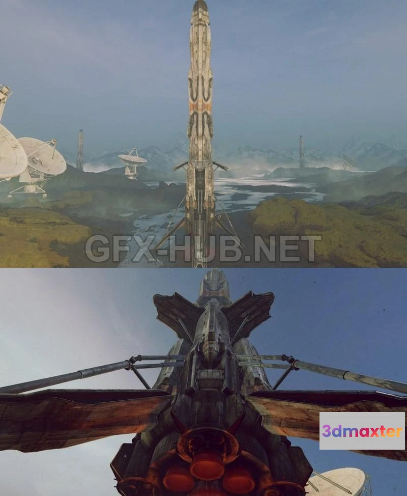 - Name: PBR Game 3D Model – Black Sand Plains Rocket Breakdown