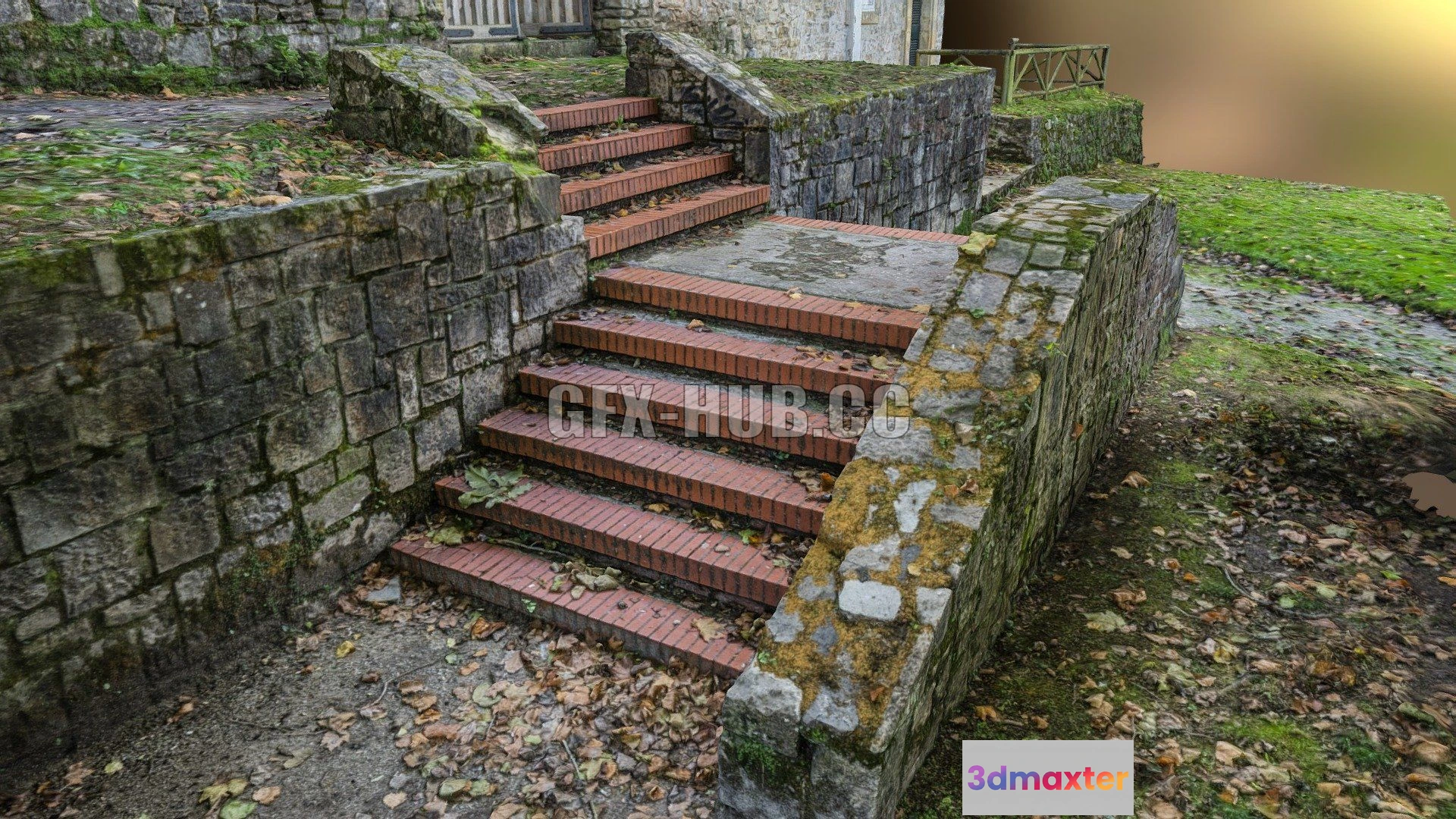 - Name: PBR Game 3D Model – Brick stairs over stone wall scan