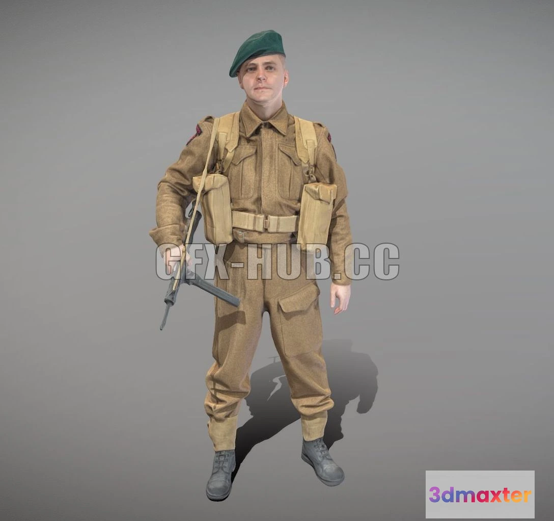 - Name: PBR Game 3D Model – British commando character from World War 2 43
