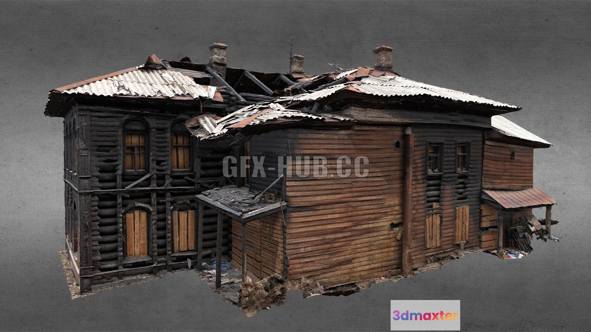 - Name: PBR Game 3D Model – Burned wooden building for reconstruction
