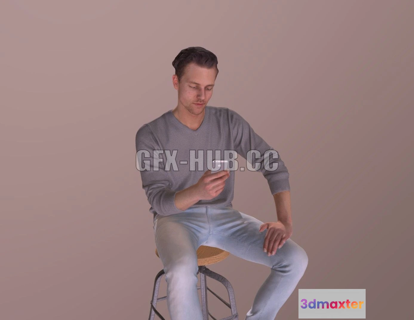 - Name: PBR Game 3D Model – Casual Sitting Man Vince Texting Phone