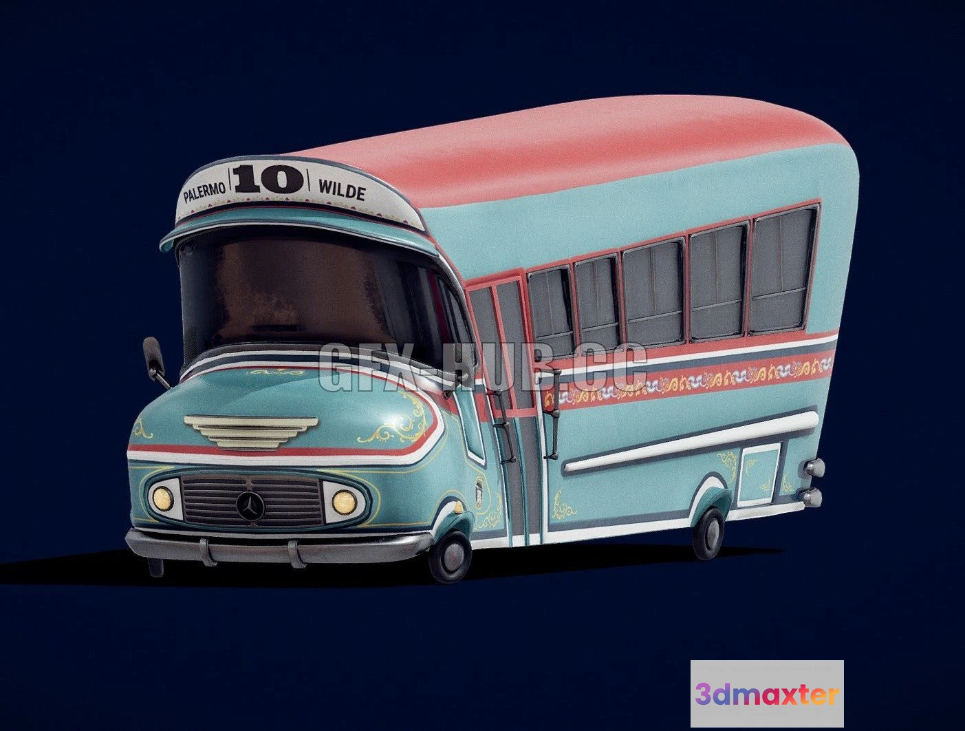- Name: PBR Game 3D Model – Colectivo 10 Toon (Argentine Bus)