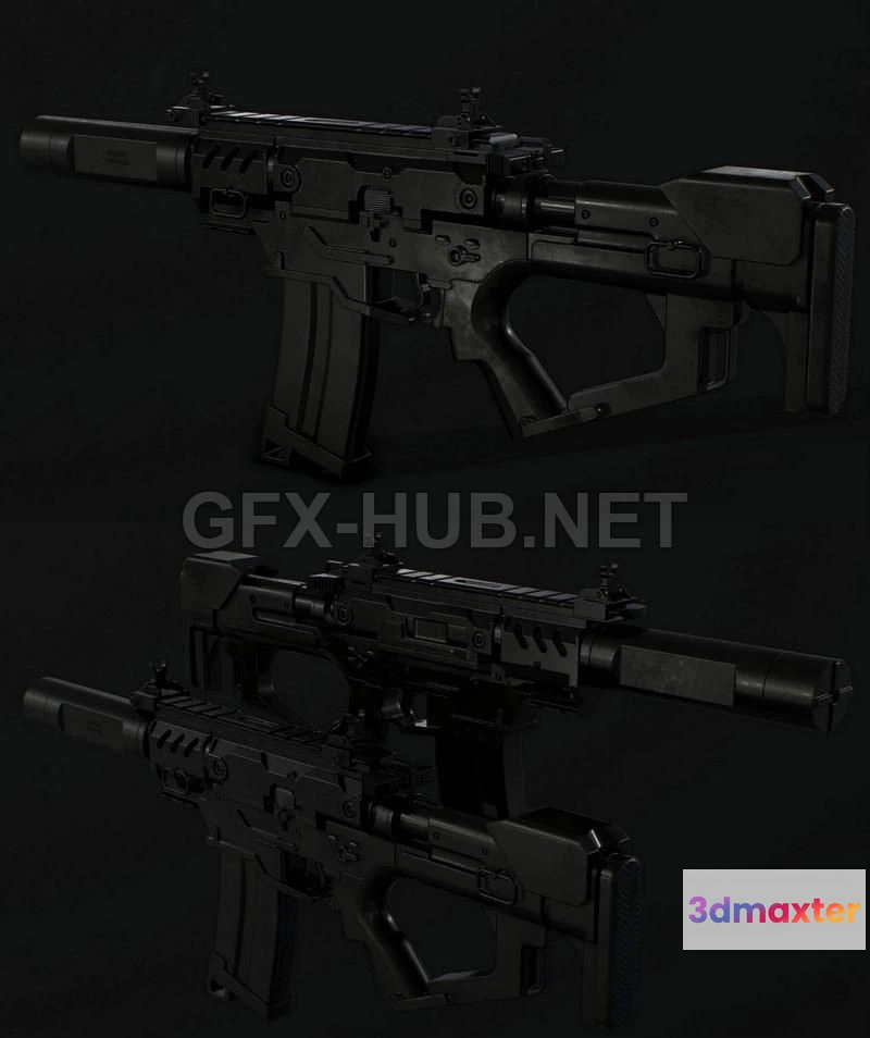 - Name: PBR Game 3D Model – Compact Assault Rifle