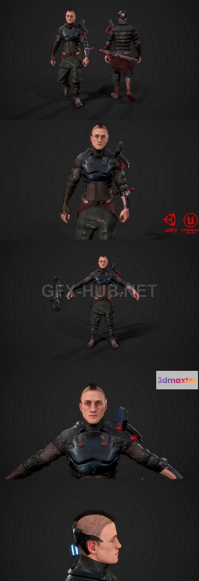 - Name: PBR Game 3D Model – Cyber samurai Low-poly
