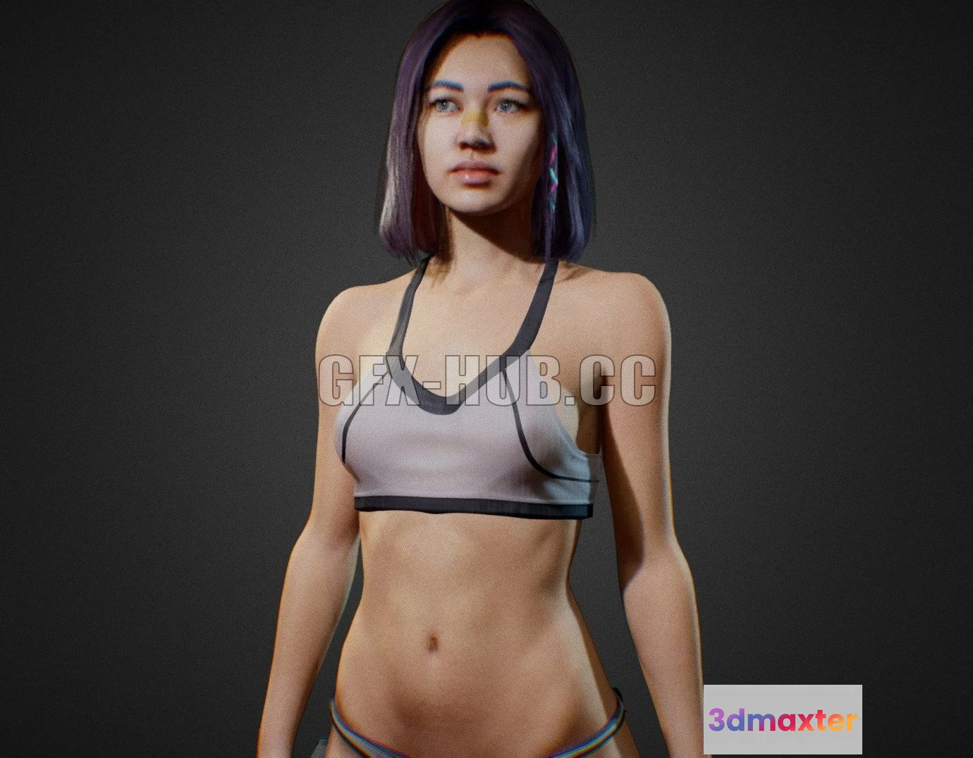 - Name: PBR Game 3D Model – Cyberpunk Replicant Girl