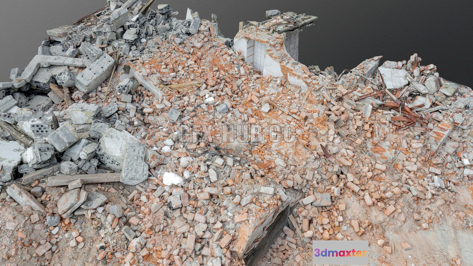 - Name: PBR Game 3D Model – Demolished house ruin