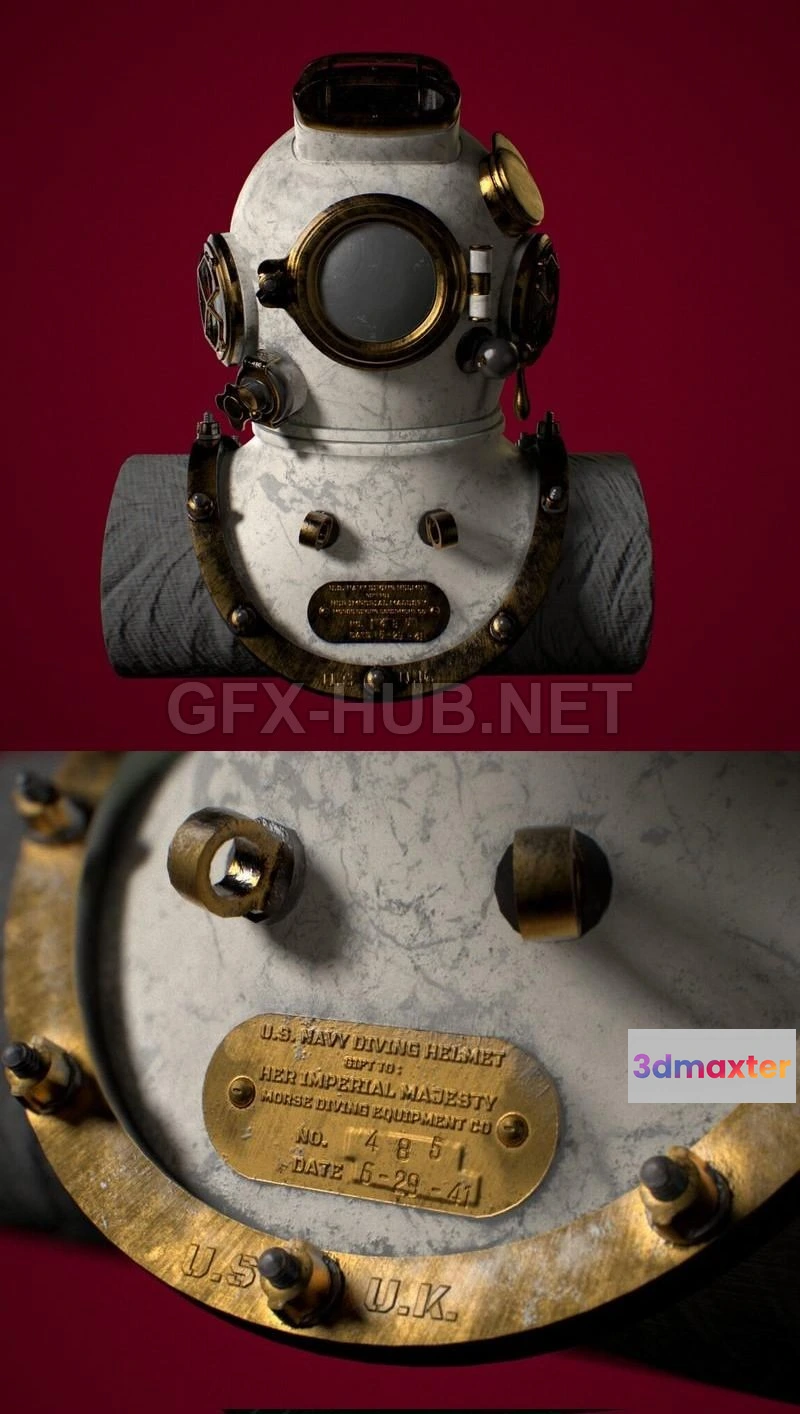- Name: PBR Game 3D Model – Diving Helmet 1941