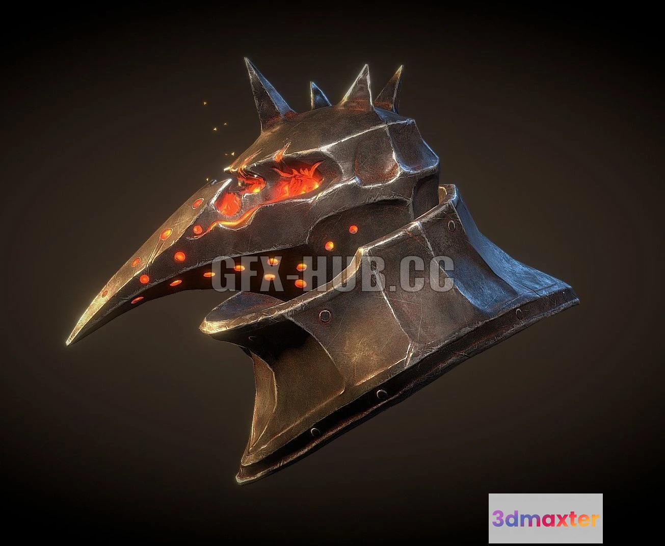 - Name: PBR Game 3D Model – Fire deamon helmet