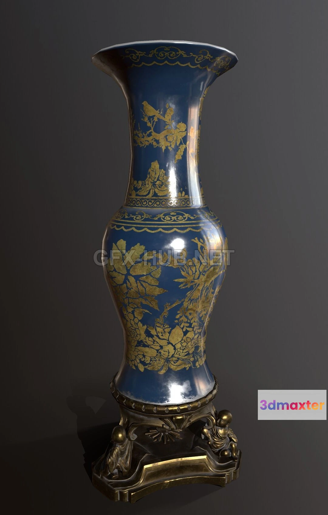- Name: PBR Game 3D Model – Floor Vase with Bronze Stand