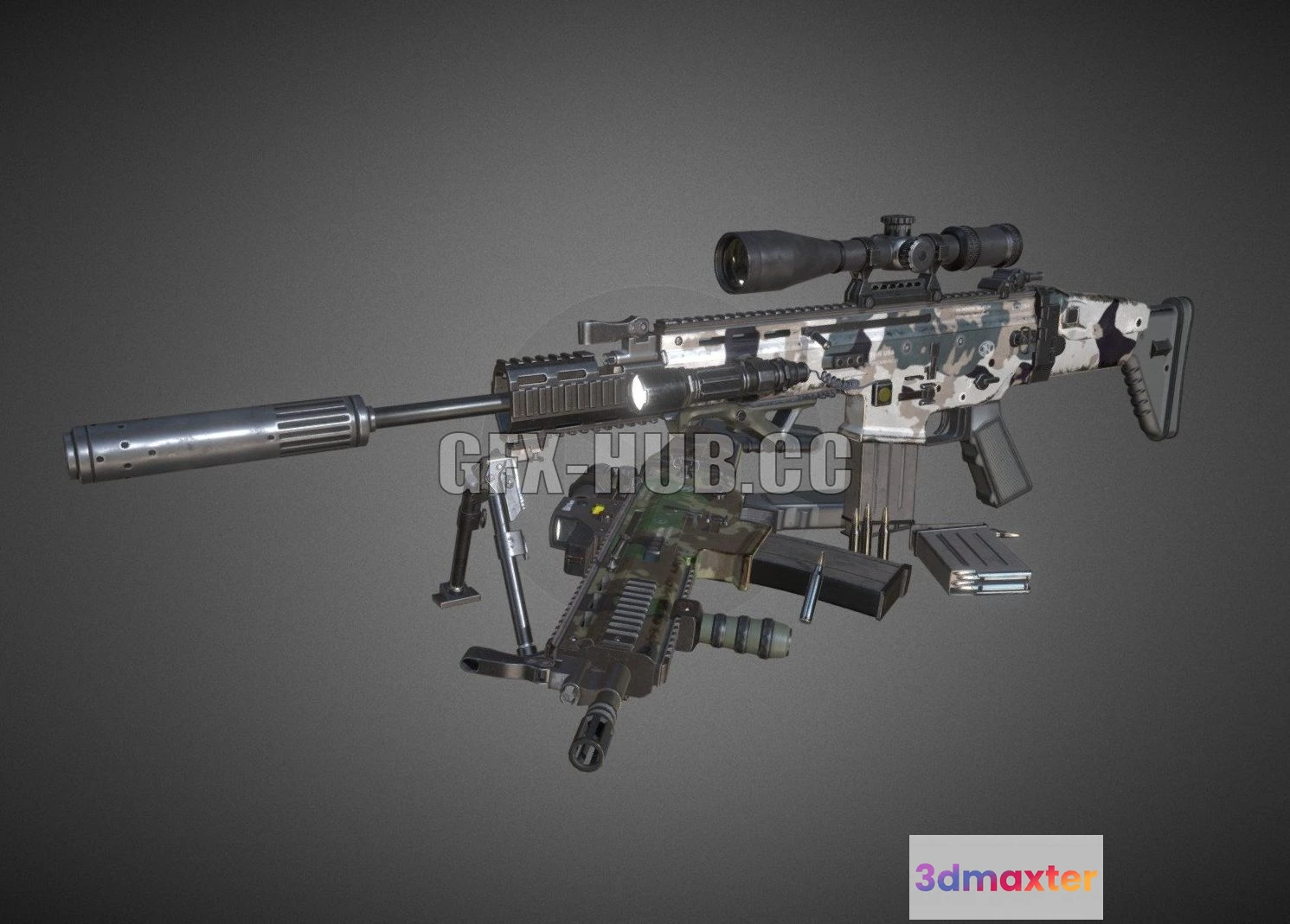 - Name: PBR Game 3D Model – FN SCAR-L Sniper