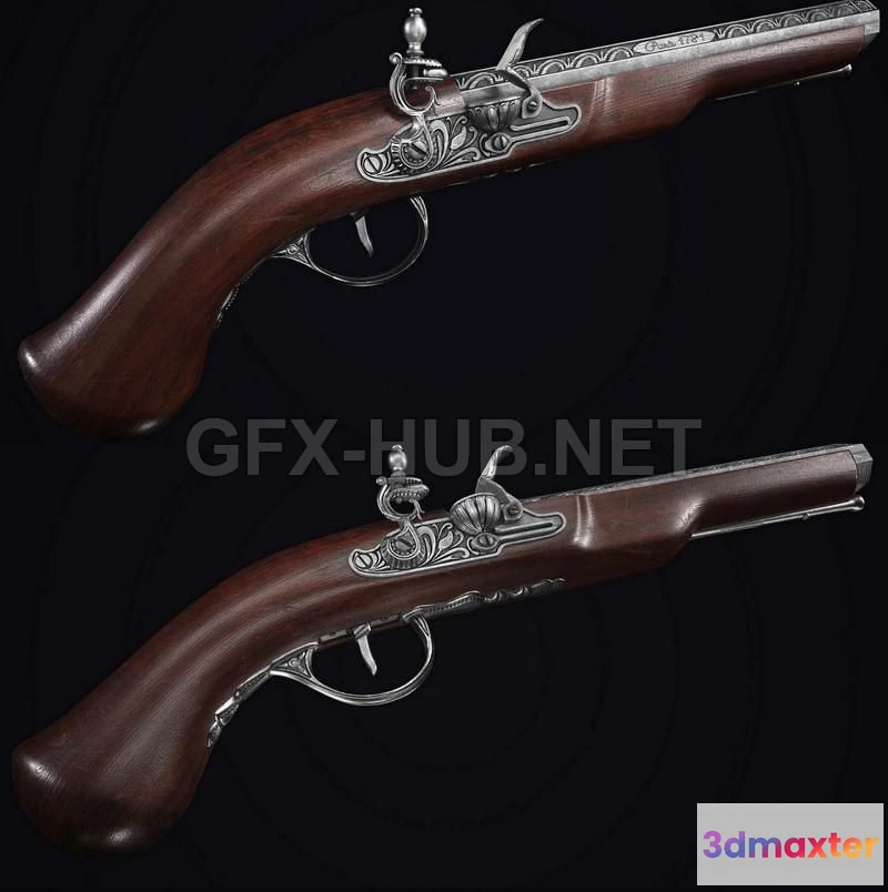 - Name: PBR Game 3D Model – French Flintlock Pistol