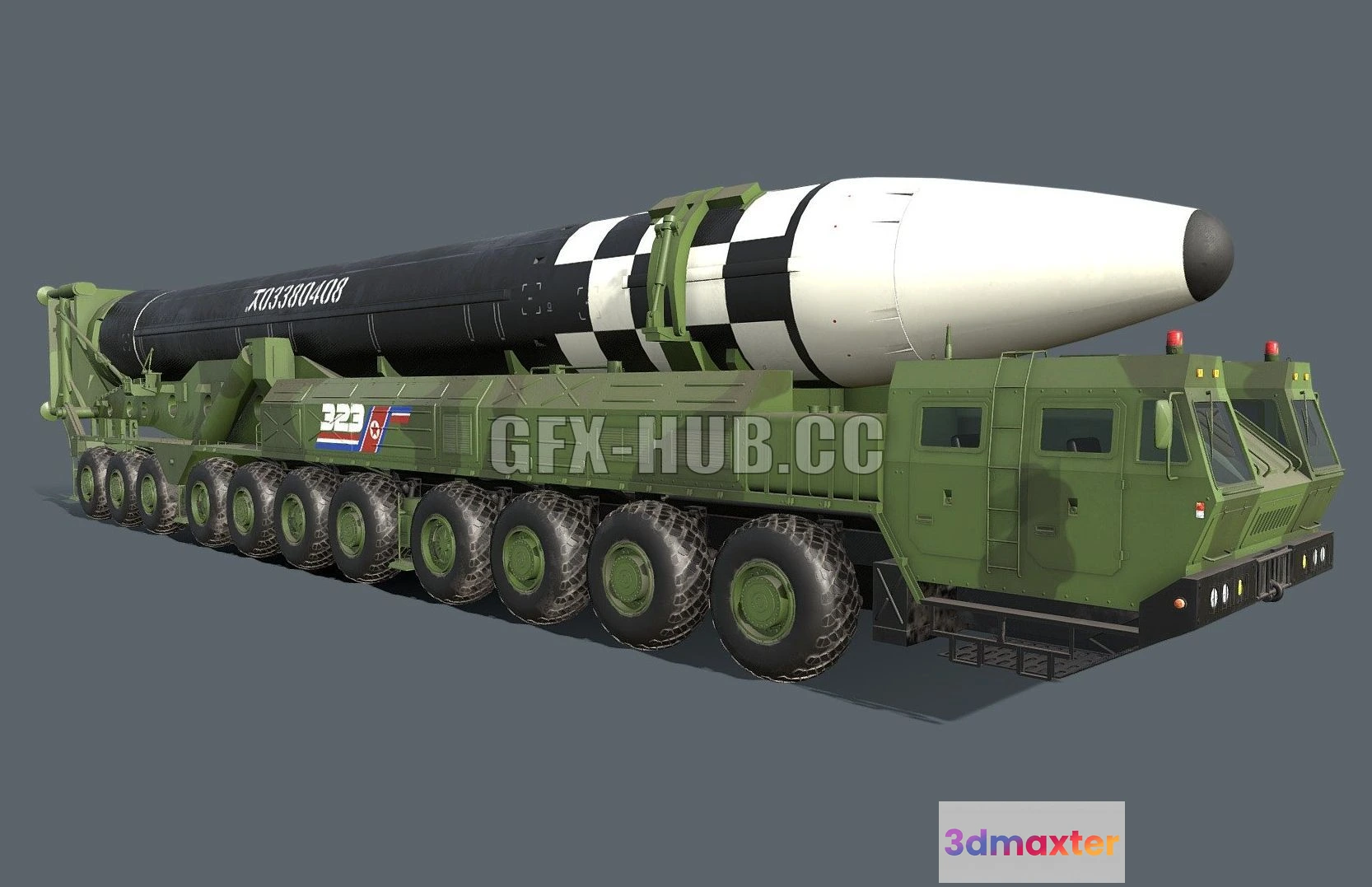 - Name: PBR Game 3D Model – Hwasong 17 missile launcher