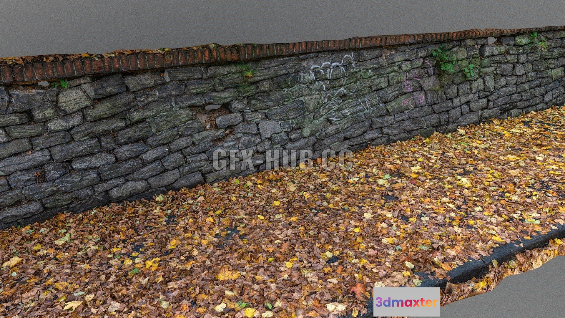 - Name: PBR Game 3D Model – Leaf covered sidewalk with stone wall