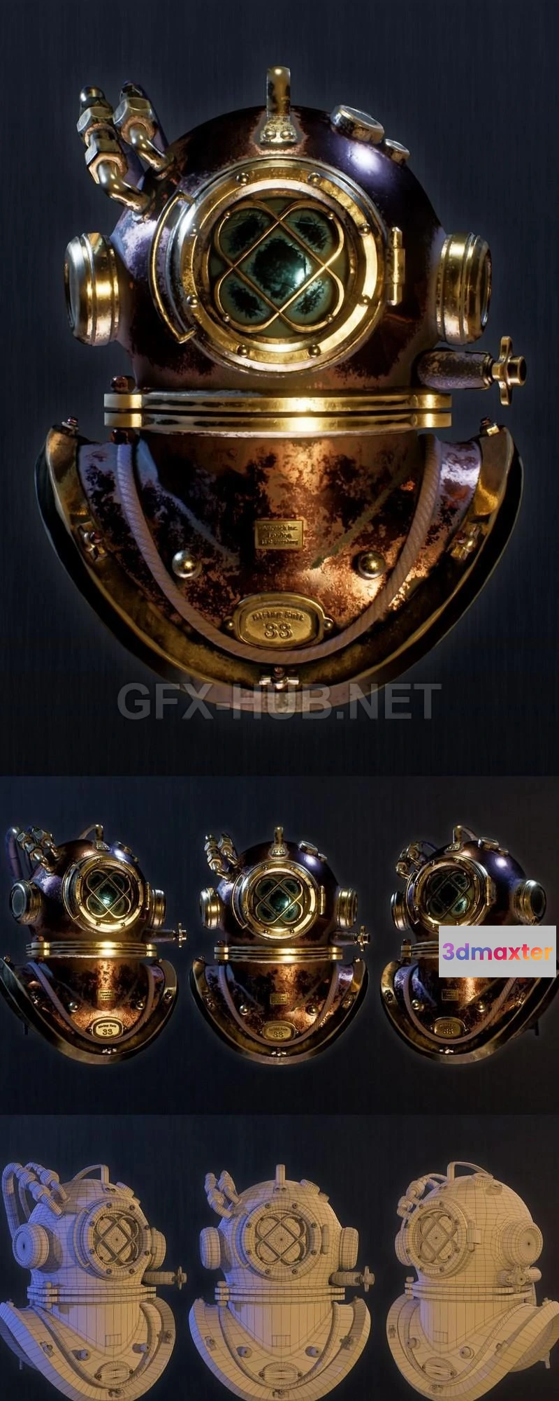 - Name: PBR Game 3D Model – Old diving helmet