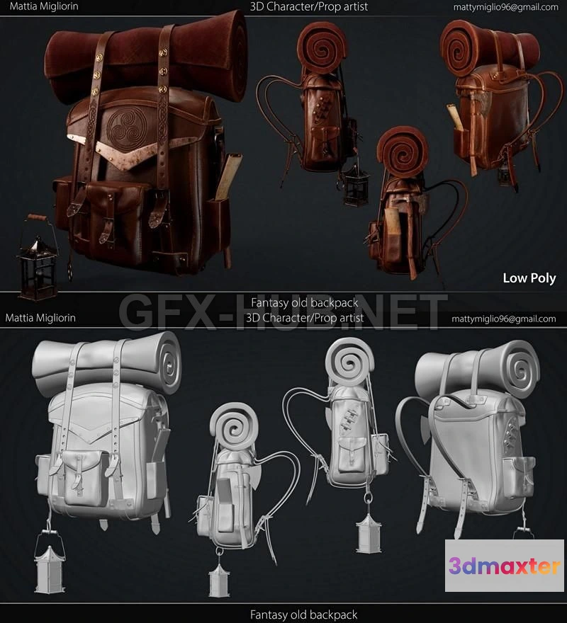 - Name: PBR Game 3D Model – Old Fantasy Backpack